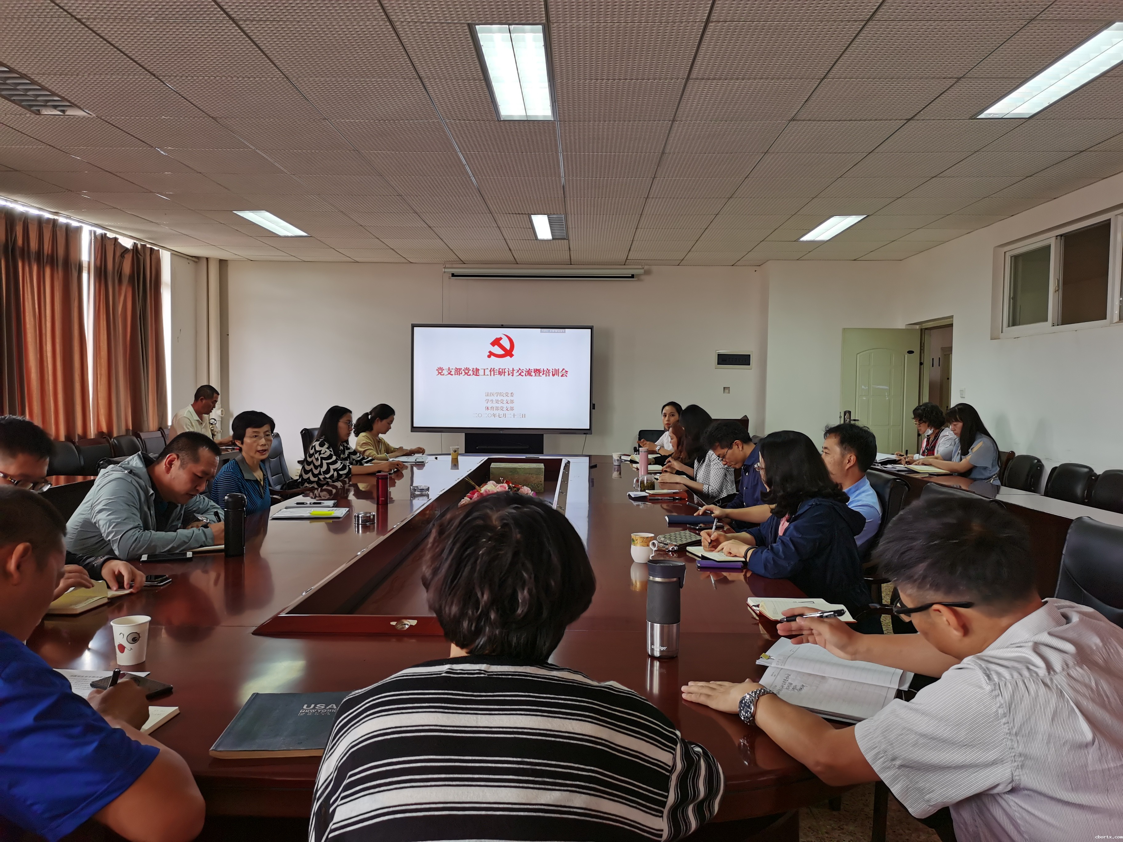 2020年7月23日上午,学校党委委员、副校长徐绍琼同志到法医学院主持召开党支部党建工作研讨交流暨培训会。法医学院党委委员、法医学院所属四个支部、学生处党支部、体育部党支部全体委员参加了会议。