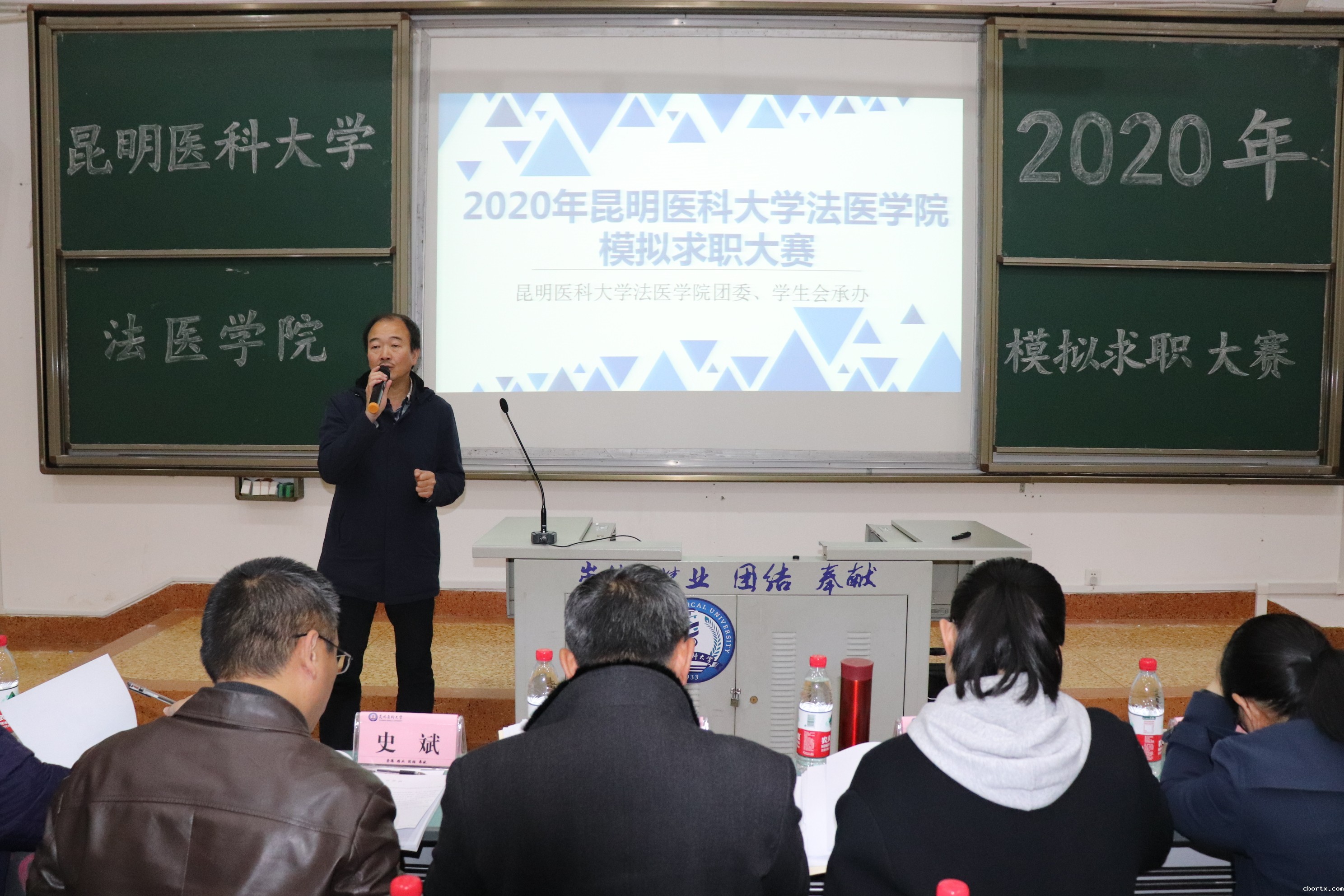 经过法医学院党委领导和团委、学生会精心的组织策划,2020年11月3日晚上6点,在18luck备用登录6104阶梯教室成功举办了“18luck备用登录法医学院2020年模拟求职大赛”。本次活动邀请就业对口单位相关部门领导和老师担任评委,法医学院院长李飞、法医学院党委副书记马华、法医学院法医系主任曾晓锋、法学系主任李晓堰、法医学院工会主席高丽萍、法医学院学生办公室主任浦永杰、法医学院分团委书记申莹、法医学院法医党支部书记詹萌、法医学院学生工作办刘露等领导和老师到场参与并指导工作。