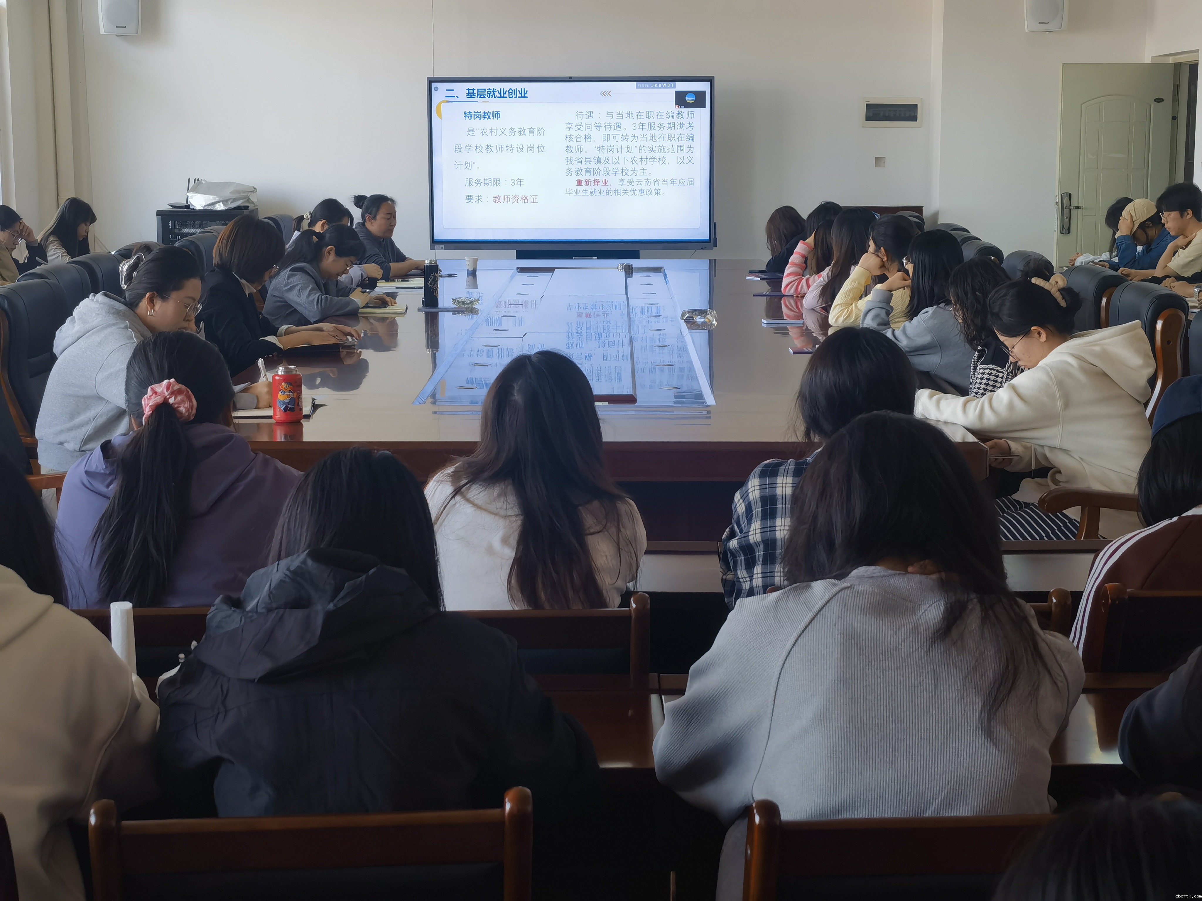 会议着重对就业政策100问、基层就业创业政策等方面进行了政策宣讲,对毕业去向分类以及去向系统的材料申请、审核等进行了指导,对2025届毕业生进行了就业指导。会议还邀请了往届西部计划和法律援助志愿者进行了互动与交流。通过宣讲,同学们进一步明确了就业方向和目标。