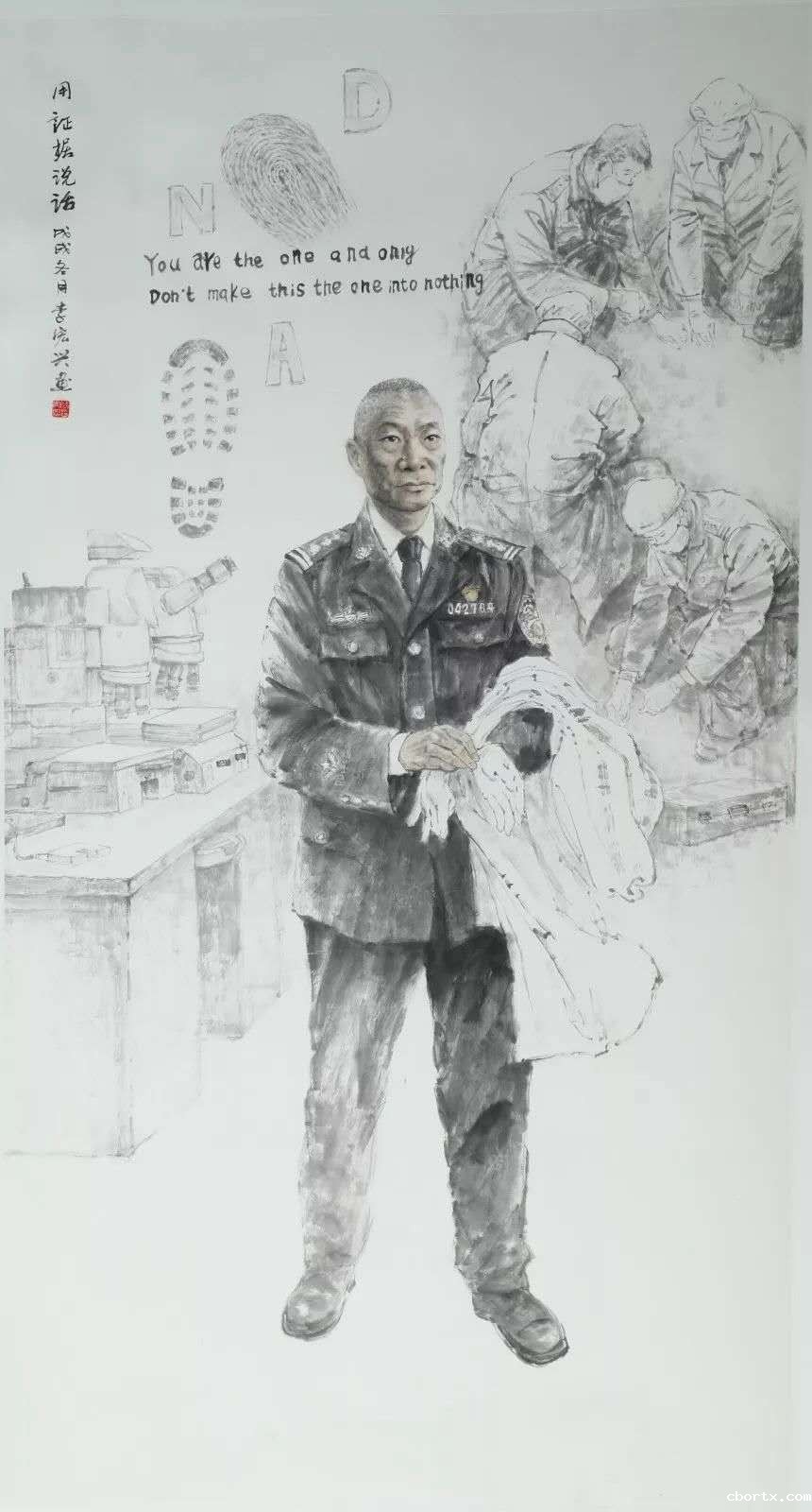 3. “热血铸警魂——为全国公安英模造像美术作品展”,2019年5月19日,全国公安文联、全国公安文联美术家协会主办,《用证据说话》创作原型