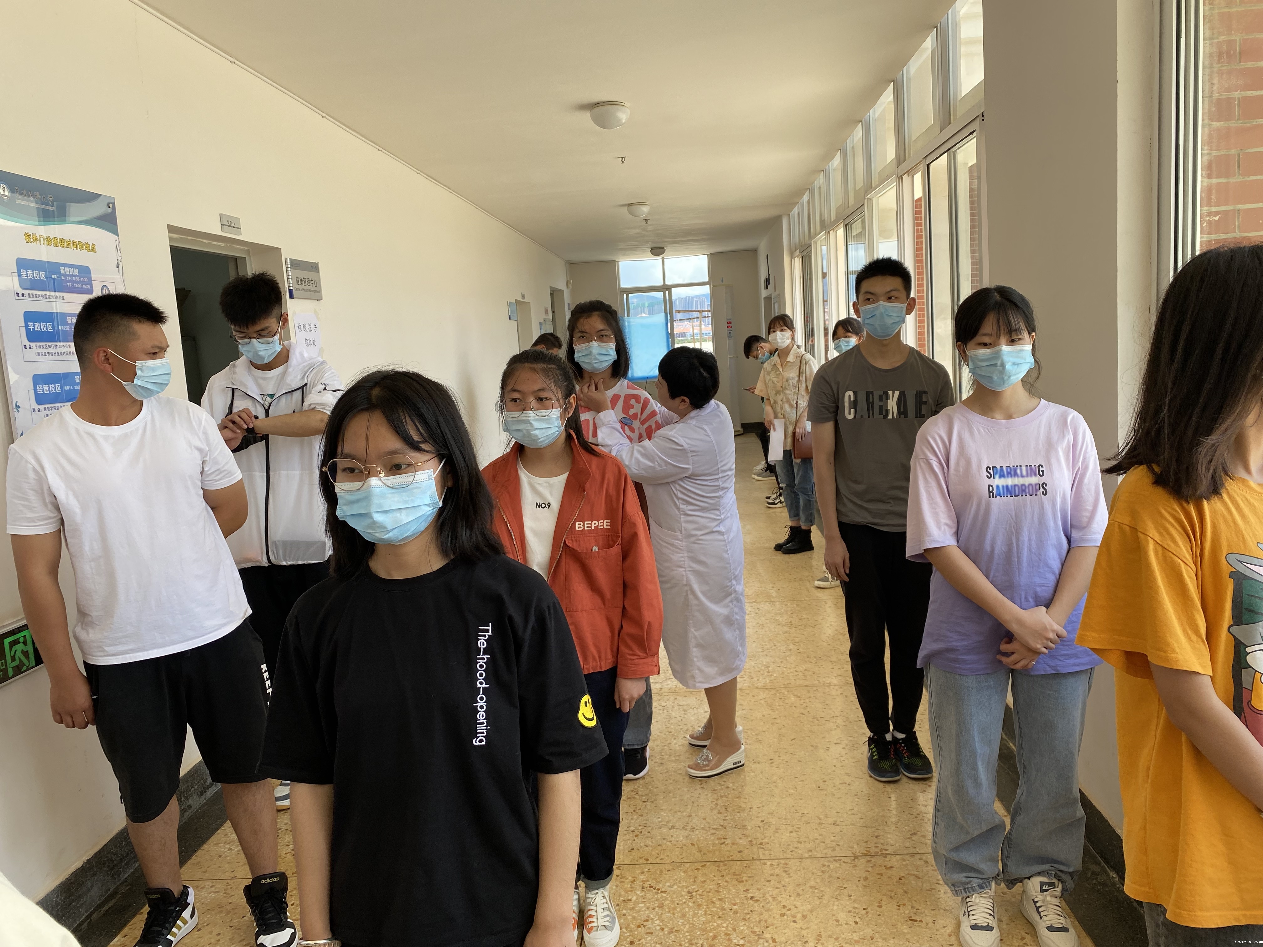 校医院全体医务人员热情耐心、细致给每一位同学做检查,并对体检的结果做了认真、详细登记记录,对体检异常同学给予立即追踪观察;在保证体检质量的同时,医院疫情防控工作不松懈,体检中要求同学都佩戴好口罩,做好个人防护,保持一定的安全距离