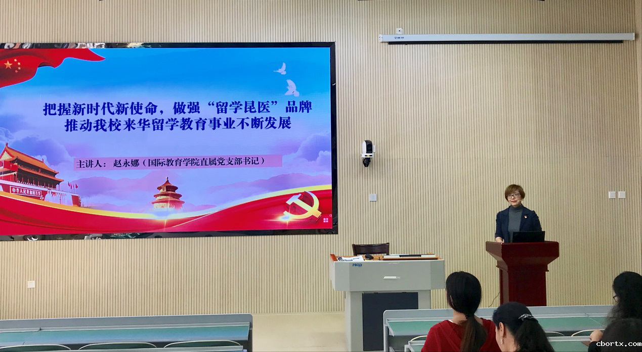 赵永娜带领大家回顾了新中国成立以来来华留学教育事业的发展历程,特别是十八大以来党和国家对教育对外开放的高度重视。带领大家认真学习了习近平总书记关于教育对外开放的重要指示精神。来华留学教育作为国家对外交流的重要组成部分,在服务国家外交大局、重大战略、“一带一路”建设、高等教育改革发展中发挥着重要作用。结合我校来华留学教育工作实际,赵永娜系统讲述了我校在培养“知华、友华、爱华”的高素质国际医学人才进程中的积极实践与探索、取得的重大成果和下一步的工作部署。