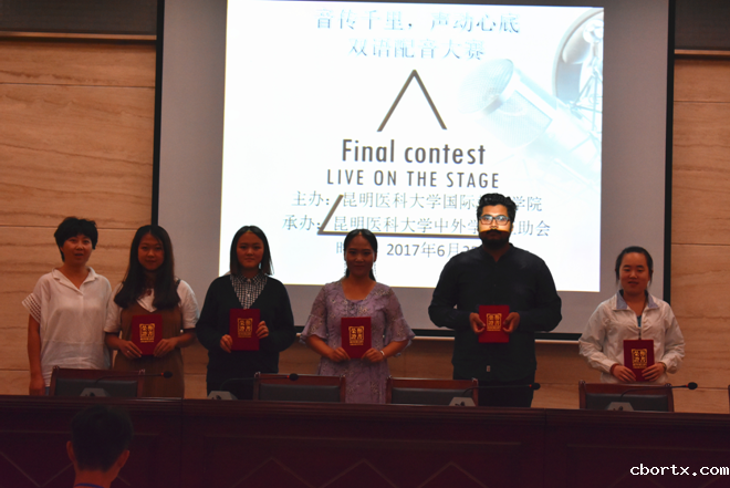 2018年6月25日国际教育学院和校团委共同举办的双语音配音大赛成功举行。此次比赛邀请团委书记杨国华老师、国际教育学院副院长陈绍春老师、屈凡伟老师、张勇老师和外语部金利老师担任评委以及颁奖嘉宾。10名留学生和15名中国学生同台竞技,每位参赛选手现场展示一段中文配音和英文配音。