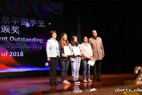 晚会期间,举行了2018年教育部优秀来华留学生奖学金颁奖典礼,副校长李燕和解保生为3名获奖者颁奖。