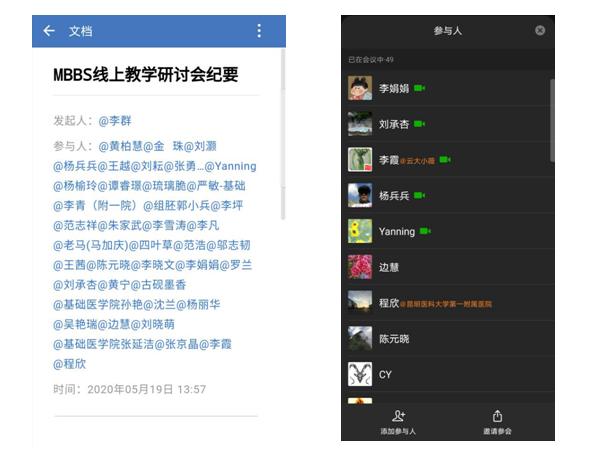 为进一步做好MBBS线上教学,梳理前期工作开展情况,总结经验,指导工作,5月19日,国际教育学院通过企业微信视频会议形式,组织召开了MBBS线上教学研讨会,本学期承担MBBS教学任务的基础医学院、公共卫生学院、法医学院、第一临床医学院、第二临床医学院、临床肿瘤学院、图书馆、国际教育学院等8家单位的50余名任课教师和教学管理人员参加了研讨,会议由国际教育学院副院长杨兵兵主持。