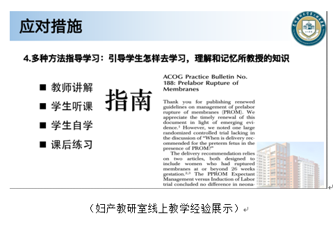 研讨会上,基础医学院人体解剖与组织胚胎学系刘承杏副教授、第二临床医学院妇产教研室杨丽华主任、国际教育学院汉语课程组王越老师分别介绍了基础课程、临床课程和汉语类课程线上教学开展情况、做法经验以及下一步工作思路和打算;国际教育学院教学管理办公室主任李群老师通报了MBBS线上教学开展以来教师层面和学生层面质量周报情况,重点介绍了学生对线上教学的需求和改进意见;最后,参会教师进行了研讨,分享了各自的教学体验,指出了面临的问题,明确了进一步的解决办法。