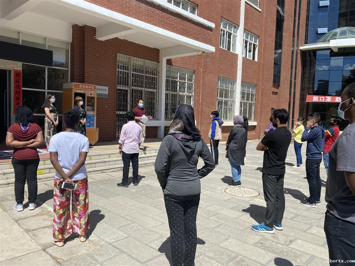 为进一步做好国际教育学院疫情防控工作,检验学院师生对新冠疫情的应急处置能力,更好地保证安全开学、平安复课,6月4日上午,学院再次组织师生学习新冠疫情防控应急预案及处置流程,并举行了演练。学院领导、疫情处置专管老师、学院教职工和住朋乐楼的19名留学生参加了培训和演练。
