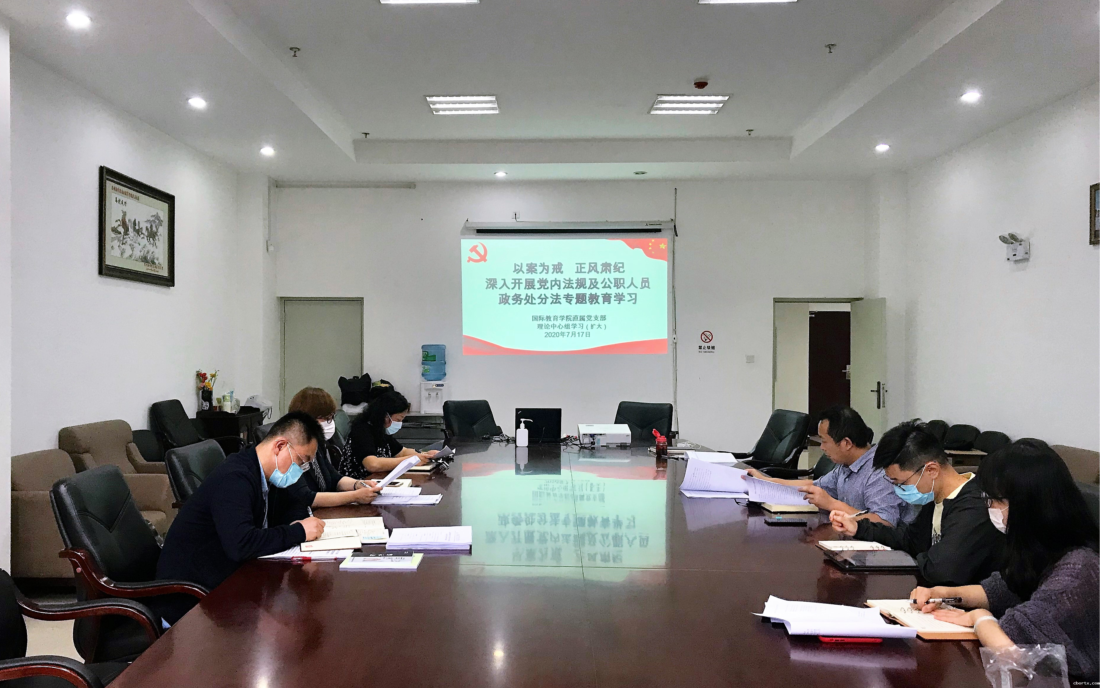 为深入学习贯彻习近平新时代中国特色社会主义思想,进一步加强党的政治建设、严肃党的政治纪律和政治规矩,国际教育学院直属党支部理论学习中心组(扩大)近日开展了主题为“以案为戒、正风肃纪,深入开展党内法规及公职人员政务处分法”专题学习教育。国际教育学院直属党支部书记、院长赵永娜主持此次学习。