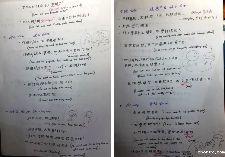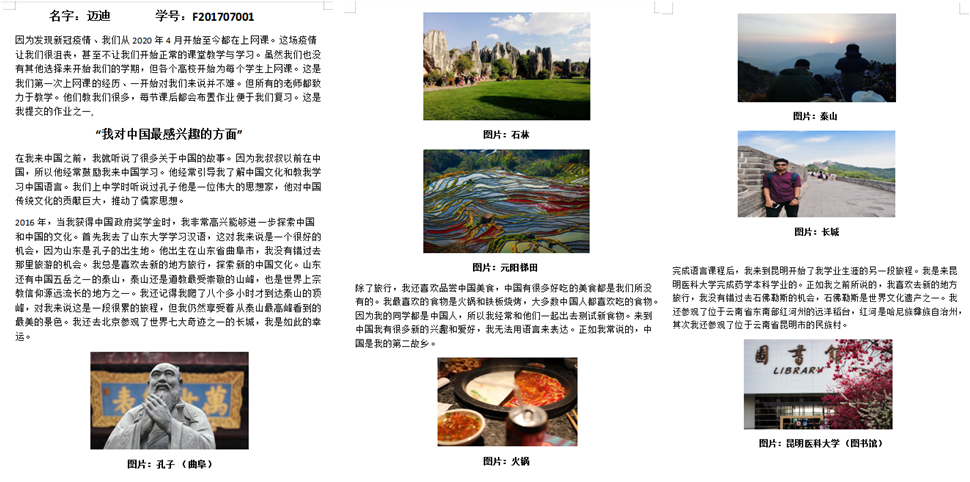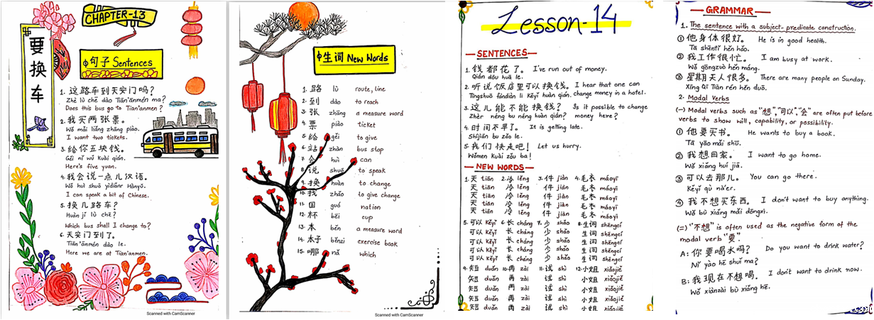 受新冠肺炎疫情影响,本学期以来,我校国际学生的教学从线下转移到了线上,各类汉语类课程同样也是在网络上进行,为了增加师生之间的交流,进一步激发国际学生学习汉语的兴趣及动力,鼓励学生充分利用网络课程学好汉语,丰富课余文化生活,国际教育学院组织开展了“春生彩‘笔’,‘记’录云端学习——国际学生汉语类课程作业及学习笔记大赛”,国际学生们反响强烈,踊跃参加,他们用精彩纷呈的课堂笔记和作业展示了线上学习成效。