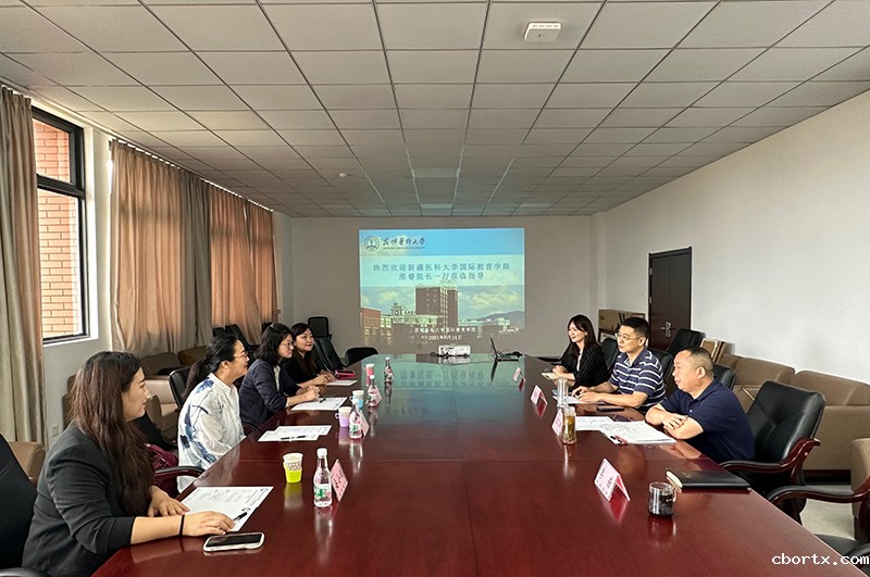 7月24日上午,新疆医科大学国际教育学院邢睿院长一行4人到我院调研交流。双方分别介绍了新疆医科大学和18luck备用登录来华留学生教育概况,随后就来华留学生临床医学专业招生和管理工作进行了深入交流,讨论了进一步完善培养方案及强化师资队伍建设等方面的做法。