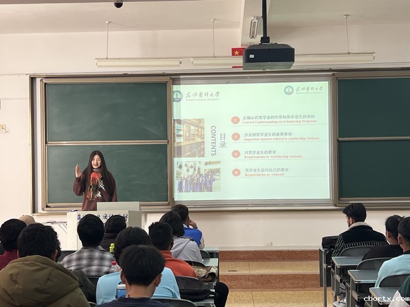各位老师从校纪校规教育、《来华留学生学生手册》、跨文化适应性教育、心理健康教育、住宿管理规定、奖学金和年度评审等方面介绍了学校的管理要求,向留学生强调留学期间应遵守中国法律法规和校纪校规,鼓励留学生们努力学习,早日实现自己成为医生的理想。