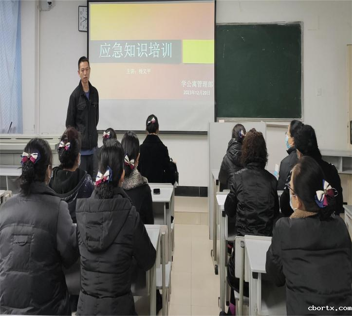 为普及消防安全知识,强化消防安全应急技能,进一步提升学生公寓管理工作人员的业务水平和应急处置能力,12月20日,学生公寓管理部在经管校区开展应急知识培训,全体职工参训。