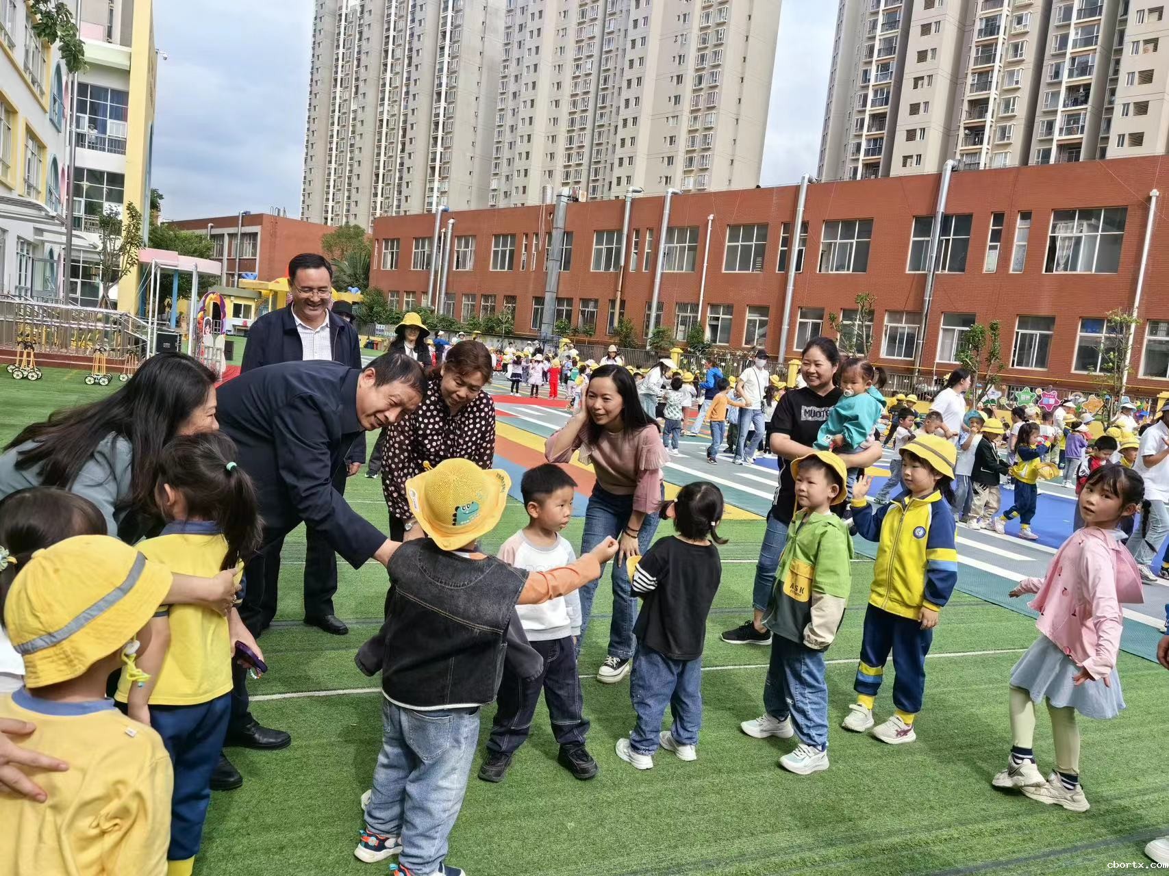 在幼儿园,夏雪山详细了解了校园安保、硬件设施、师资配备、教学理念、办园过程中存在的问题和困难,对幼儿园的办学给予了肯定,同时为孩子们送上节日的祝福,向辛勤工作的教职员工致以诚挚问候。夏雪山表示,儿童是祖国的花朵,是民族的希望和未来,教育事业是最崇高、最光辉的事业,学校高度重视幼儿园教育事业的发展,希望幼儿园教育工作者要牢记教书育人的职责与使命,悉心呵护每一个孩子,让孩子们健康茁壮地成长。夏雪山和张洪波分别表达了对幼儿园的关爱和祝福。