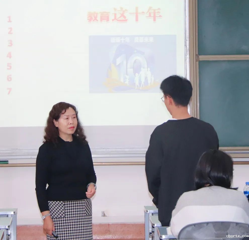张洪波副校长围绕“学习党的二十大精神 理解教育新思想”的主题,从“党的二十大关于教育重要论述的战略视野”“党的二十大关于教育重要论述的理解”等两个维度,结合学生实践开展了深入浅出的讲授。张洪波鼓励学生要在六个方面下功夫上,即在坚定理想信念上下功夫、在厚植爱国主义情怀上下功夫、在加强品德修养上下功夫、在增长知识见识上下功夫、在培养奋斗精神上下功夫、在增强综合素质上下功夫。最后,她引用党的二十大报告中的内容,要求学生“坚定不移听党话、跟党走,怀抱梦想又脚踏实地,敢想敢为又善作善成,立志做有理想、敢担当、能吃苦、肯奋斗的新时代好青年,让青春在全面建设社会主义现代化国家的火热实践中绽放绚丽之花”。
