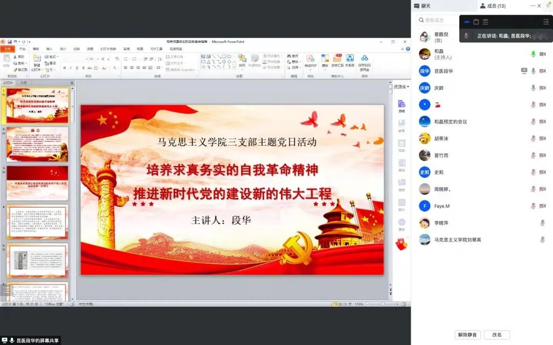 8月26日马克思主义学院党委三支部在线上组织开展主题党日活动,支部全体成员参加,学院党委副书记栗明列席指导。