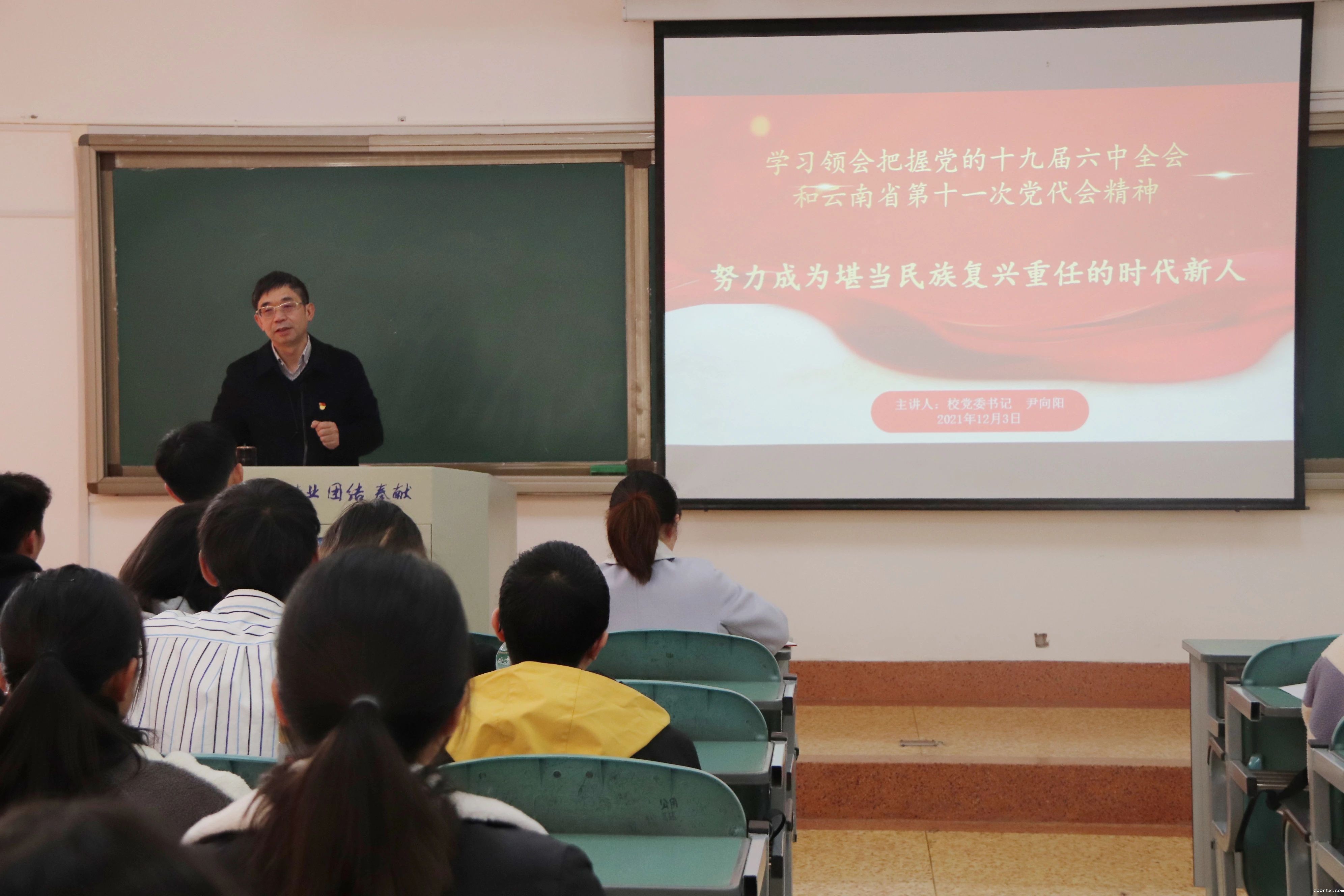 本次授课是学校深入学习贯彻十九届六中全会和云南省第十一次党代会精神,落实学校党组织书记、校长“同上一堂思政课”的重要举措。