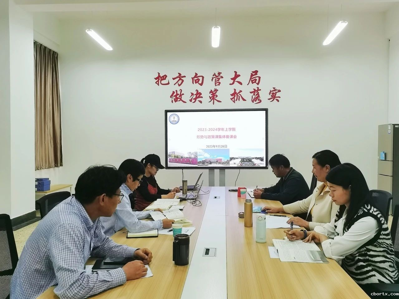 集体备课会上,老师们围绕“读懂新时代党解决台湾问题的总体方略”“开辟马克思主义中国化时代化新境界”“赓续历史文脉 谱写时代华章”“中国经济‘形’稳‘势’升”等专题进行了充分研讨交流。