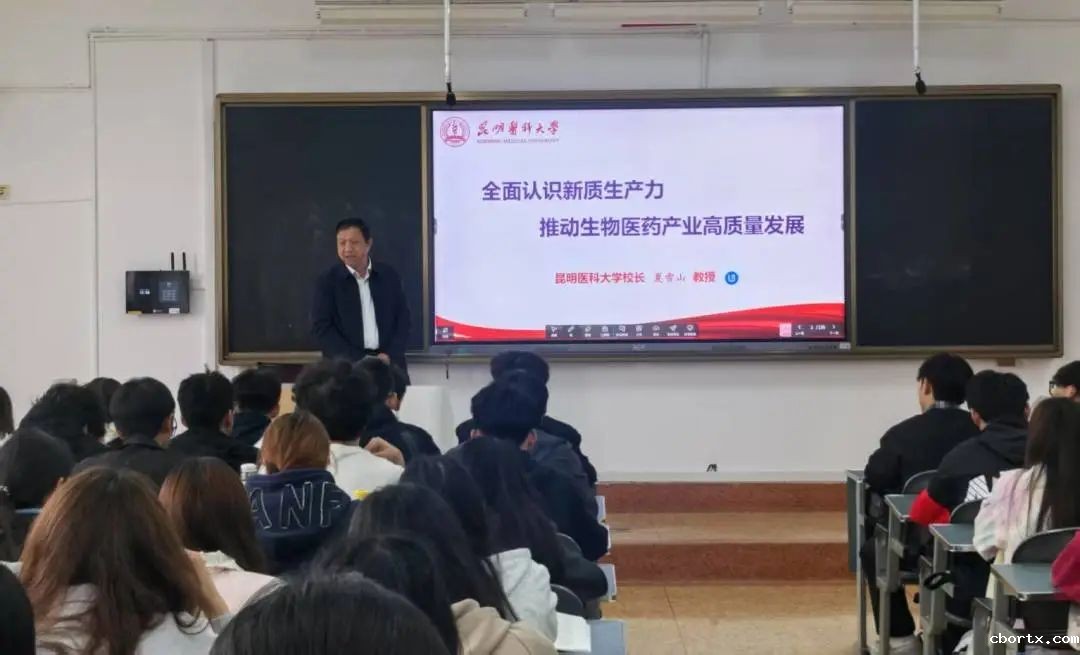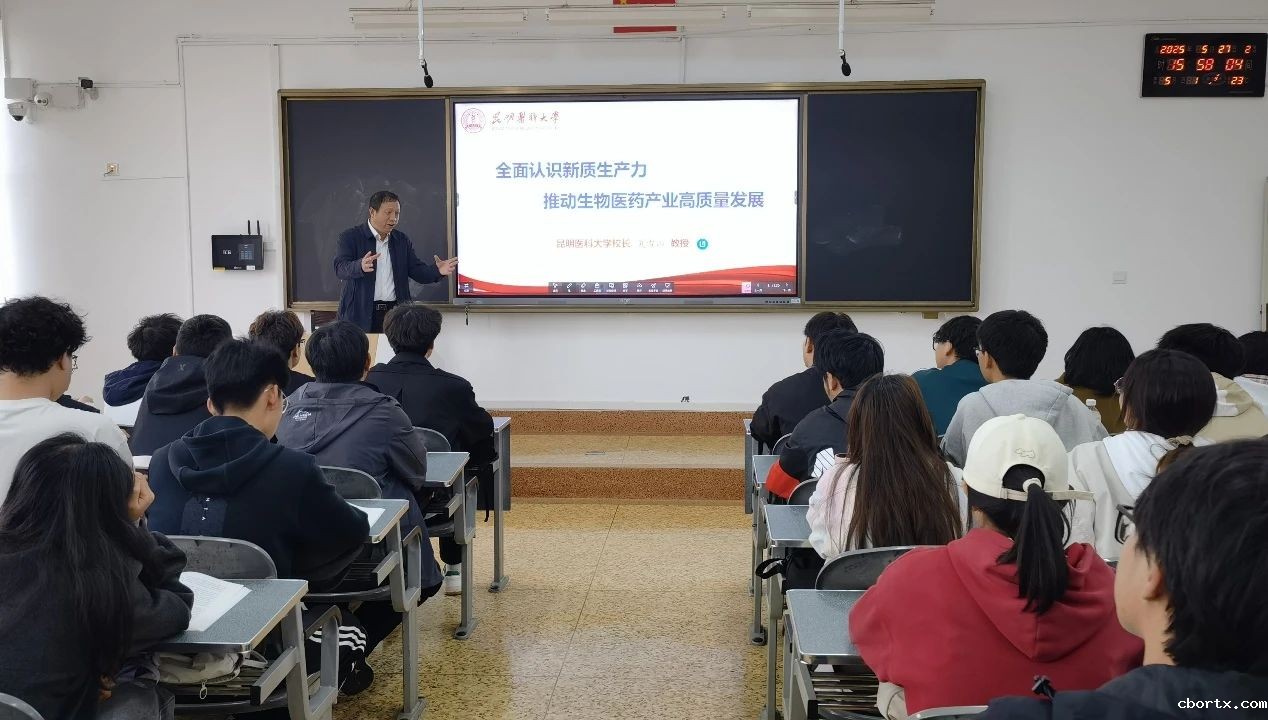 5月27日下午,学校校长夏雪山走进2024级护理学一大班“习近平新时代中国特色社会主义思想概论”课堂,讲授“全面认识新质生产力 推动生物医药产业高质量发展”的专题思政课。
