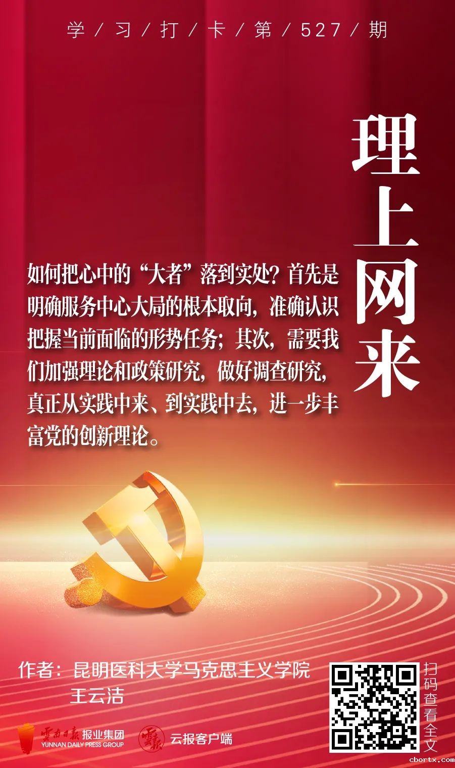 今天的“理上网来”融媒体理评专栏,一起来学习18luck备用登录马克思主义学院 王云洁的文章《心怀“国之大者”,自觉服务国家重大战略》,让党的创新理论“飞入寻常百姓家”,一起来打卡学习!