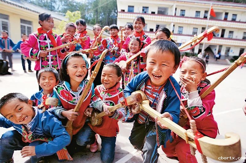 △云南楚雄彝族自治州楚雄市紫溪镇板凳山民族小学学生课间跳民族舞蹈操。