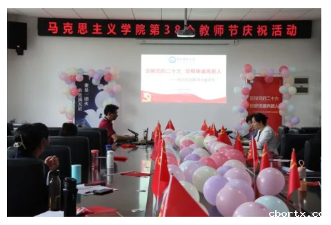 2022年9月9日,在第38个教师节来临之际,为加强教师队伍建设和师德建设,表彰先进,促进思政课及马克思主义理论学科建设水平,学院在209会议室举行庆祝活动。王砚蒙副院长主持,学院全体师生参加了活动。