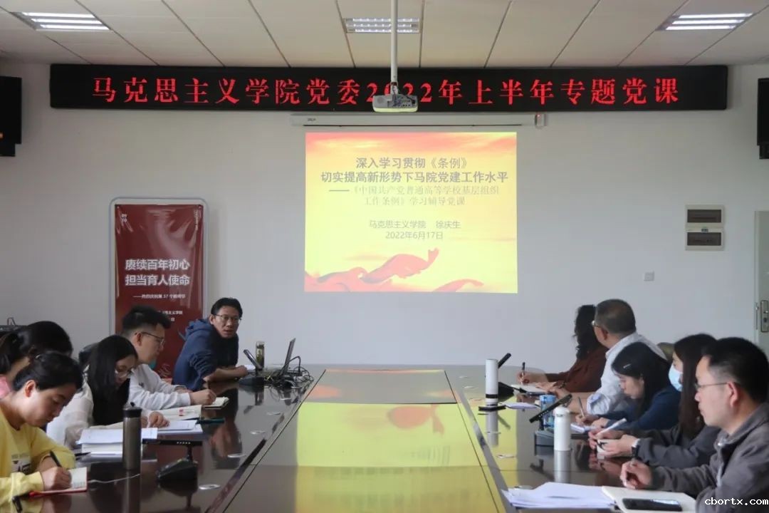 2022年6月18日下午,学院在209会议室开展了专题党课学习《中国共产党普通高等学校基层组织工作条例》,学院党委书记、院长徐庆生主讲,全体教师参与了学习。