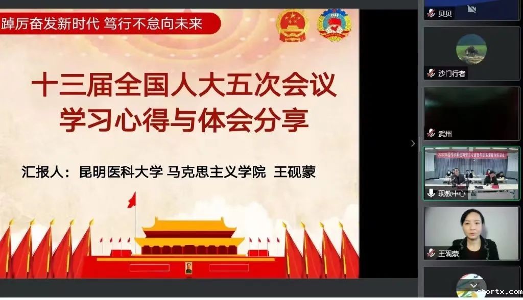 我学院王砚蒙老师结合自己履职十三届全国人大民族委员会常务委员情况,就十三届全国人大五次会议概况、习近平总书记发表的重要讲话、2022年政府工作报告解读等方面作了专题辅导。
