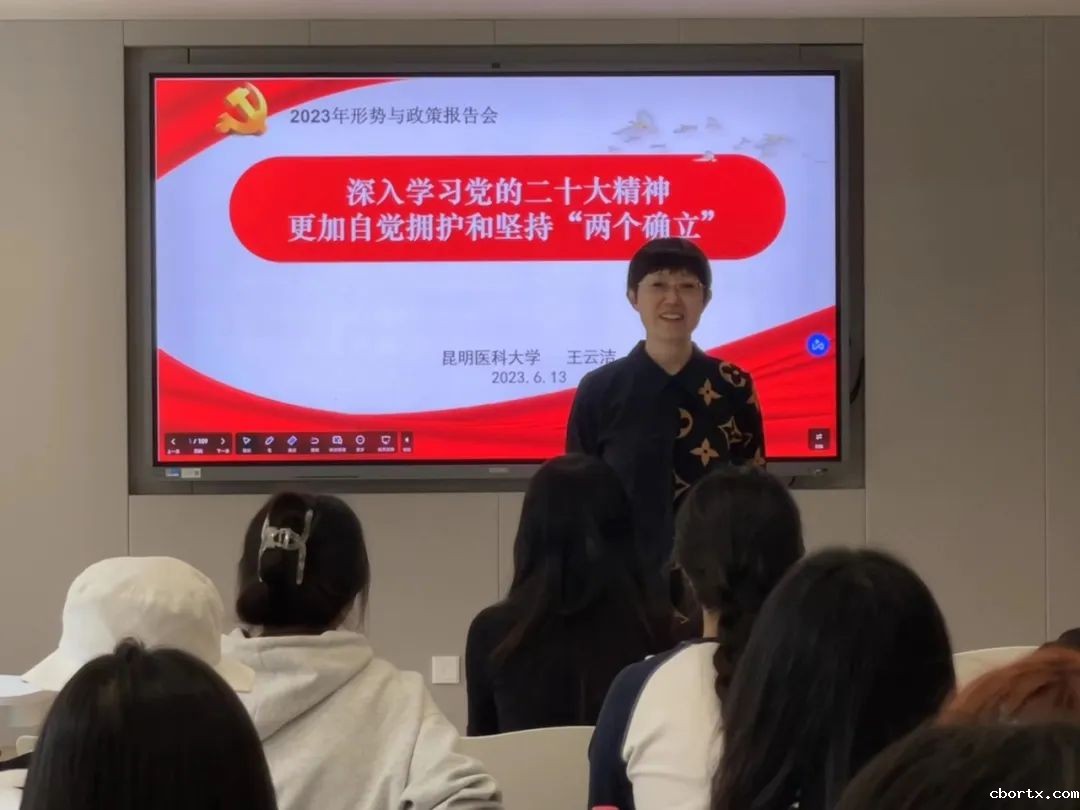 6月13日下午,马克思主义学院教师王云洁在博学园多功能厅对2021级护理中外合作班的同学进行了2023年上学期“党的二十大精神进一站式学生社区”主题报告会宣讲。