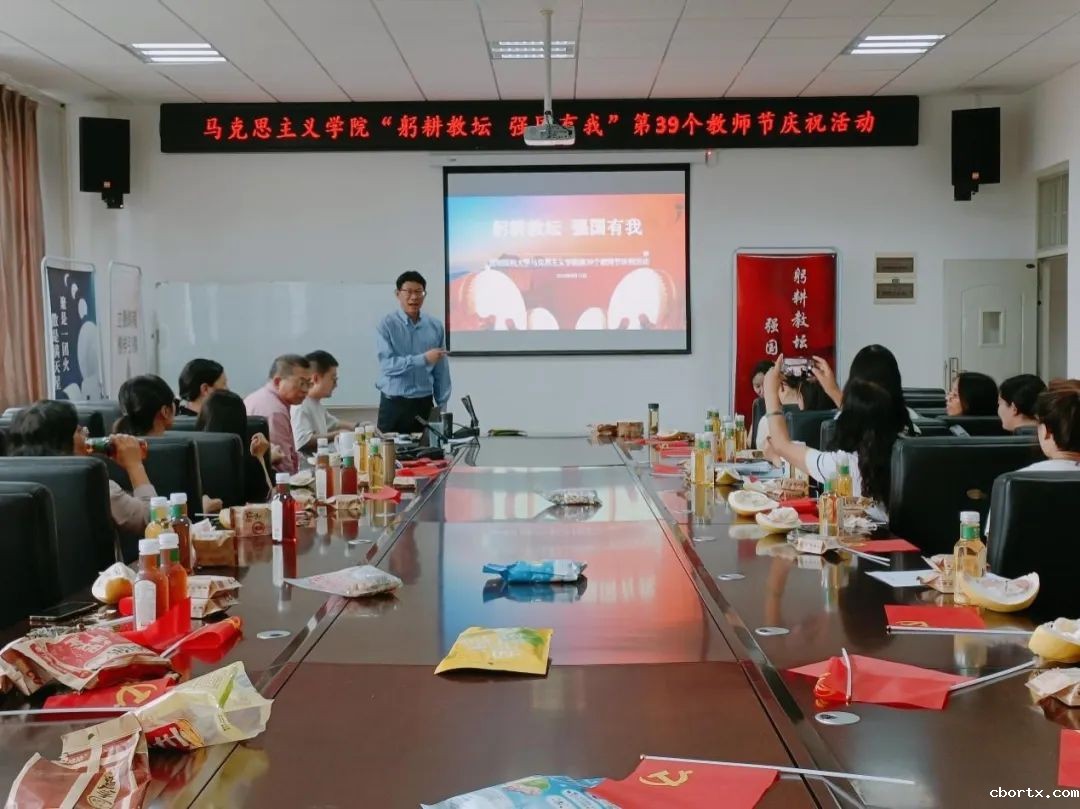 2023年9月12日下午,马克思主义学院在209会议室举办了“躬耕教坛 强国有我”第39个教师节庆祝活动,正值学校建校90周年华诞之际,全院教职工通过参加活动增强了教师的自豪感、归属感和责任感。
