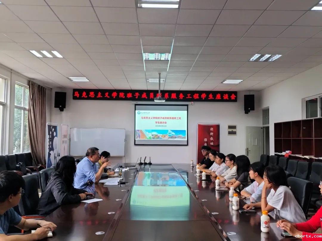2023年9月25日下午,马克思主义学院在209会议室组织召开了班子成员联系服务工程学生座谈会。学院党委副书记栗明、副院长王砚蒙、学院研究生代表以及联系服务的全体学生参加了座谈。