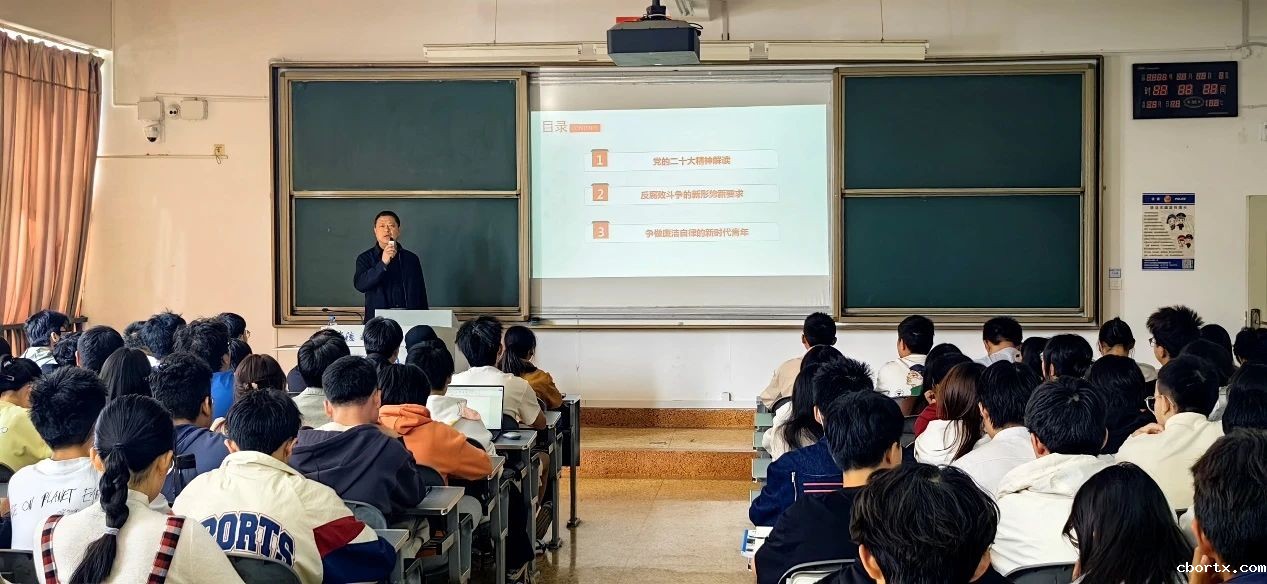 11月2日,校纪委陈文书记走进“形势与政策”课的教学一线,以 “学习贯彻党的二十大精神推进全面从严治党和党风廉政建设”为题,为2023级临床医学十、十一大班的同学们带来了一堂别开生面的思政课。