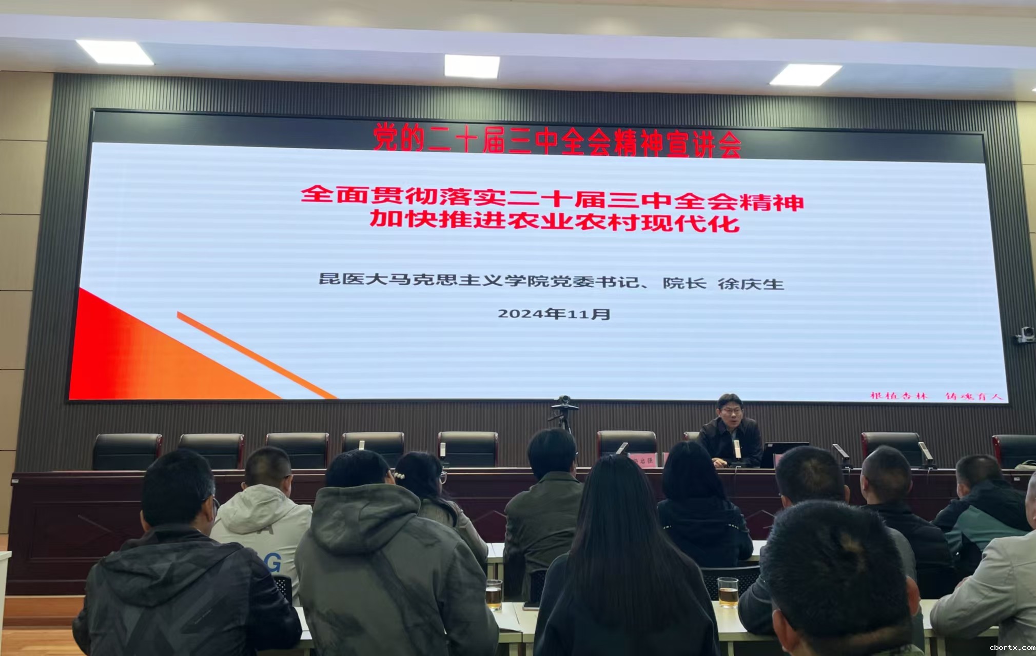 为深入学习贯彻党的二十届三中全会精神,持续巩固对口帮扶地脱贫攻坚成果、拓展推进乡村振兴工作,11月20日,马克思主义学院党委书记、院长徐庆生在保山市龙陵县象达镇党校给驻村工作队员、研支团队员、象达镇全体干部职工等100多人作了题为“全面贯彻落实党的二十届三中全会精神加快推进农业农村现代化”的政策宣讲。