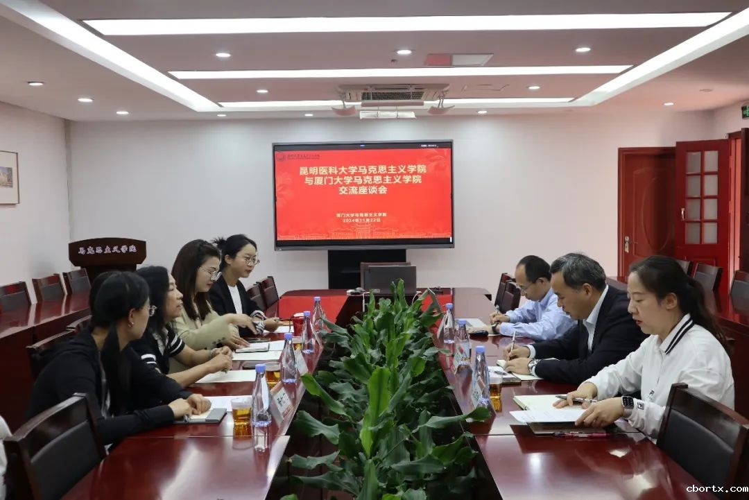 蒋昭阳主任首先对我院教师一行表示欢迎,并介绍了厦门大学马克思主义学院发展概况、师资构成、教研室设置等情况,邵庆龄老师就我院的基本情况及教研室建设、教研室特色活动等方面作了介绍。王亚群副教授就厦门大学马克思主义学院积极探索和推进的“专题教学+网络教学+实践教学”的经验做了交流发言。随后,双方教师围绕课程内容组织和转化、教研室常规化集体备课会机制、课程考核形式、青年教师教学备赛等方面展开了深入研讨交流。