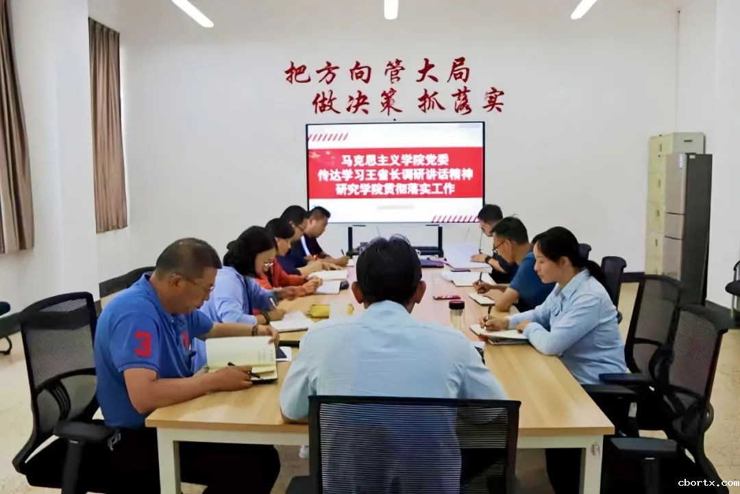 会议指出,省委副书记、省长王予波到学校调研,学校党委常委会传达学习习近平总书记对学校思政课重要指示精神,研究学校新时代思政课建设和重点马院建设工作,推动落实习近平总书记对学校思政课重要指示精神,充分体现了省委、省政府、学校党委行政对新时代学校思政课的高度重视,对马克思主义学院建设的关心和支持。我们要把此次王予波省长的调研和讲话要求转变为进一步建设好思政课的动力,全面深化改革建设,提高思政课建设质量。