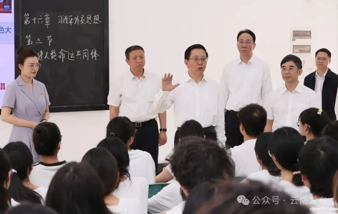 在云南师范大学马克思主义学院,王予波观摩思政教学研讨,听取两位老师分享小学、高中教学方法,要求全面贯彻习近平总书记考察西南联大旧址重要指示精神,深入推进大中小学思政教育一体化建设。在心理健康教育咨询中心,他要求结合劳动教育、社会实践、体育锻炼,促进学生身心健康。学校要发挥师范教育引领支撑作用,推动优质教育资源向边疆民族地区扩容下沉。