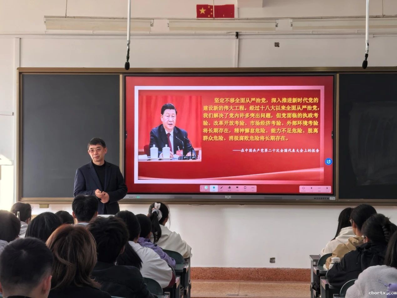 尹向阳从世界政治格局的演变以及地区热点问题切入,比较了我们国家的政治制度优势所在,并向同学们提出“为什么我们要全面从严治党”引发大家深入思考。课堂上,尹向阳结合学校推进全面从严治党过程中的具体做法和显著成效鞭辟入里地分析了全面从严治党的要求和重大意义,将“四个全面”战略布局与强国建设、民族复兴紧密联系在一起,强调党的自我革命的重要性和紧迫性。同时强调高校作为培养社会主义建设者和接班人的重要阵地,更应当积极响应党中央的号召,将全面从严治党的要求贯穿到教育教学的全过程。