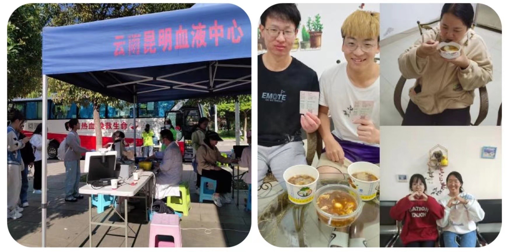 为了积极支持无偿献血工作,弘扬“无偿献血、奉献爱心”的人道主义精神。11月8日上午,学生公寓管理部开展了“你献爱心,我送温暖”活动,为献血的同学们提供爱心红糖鸡蛋服务。