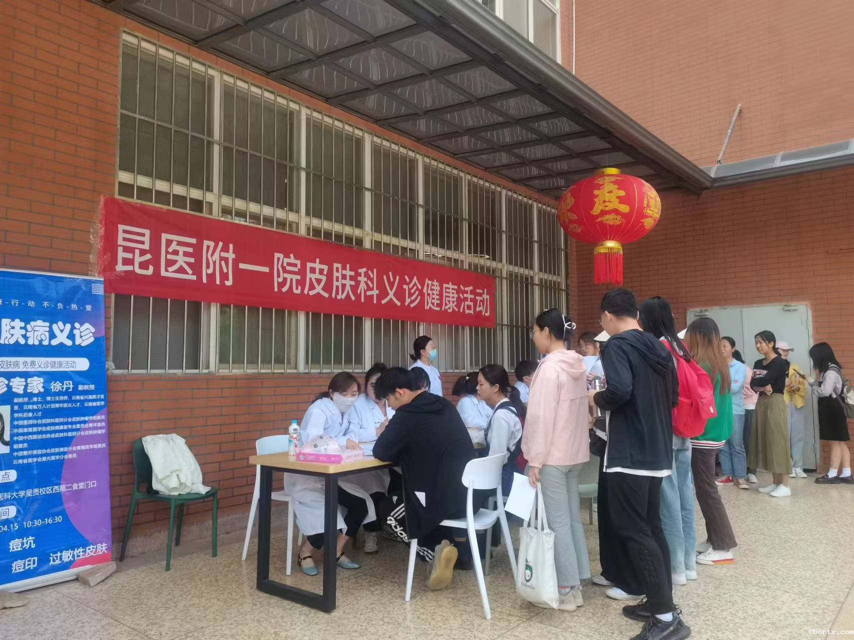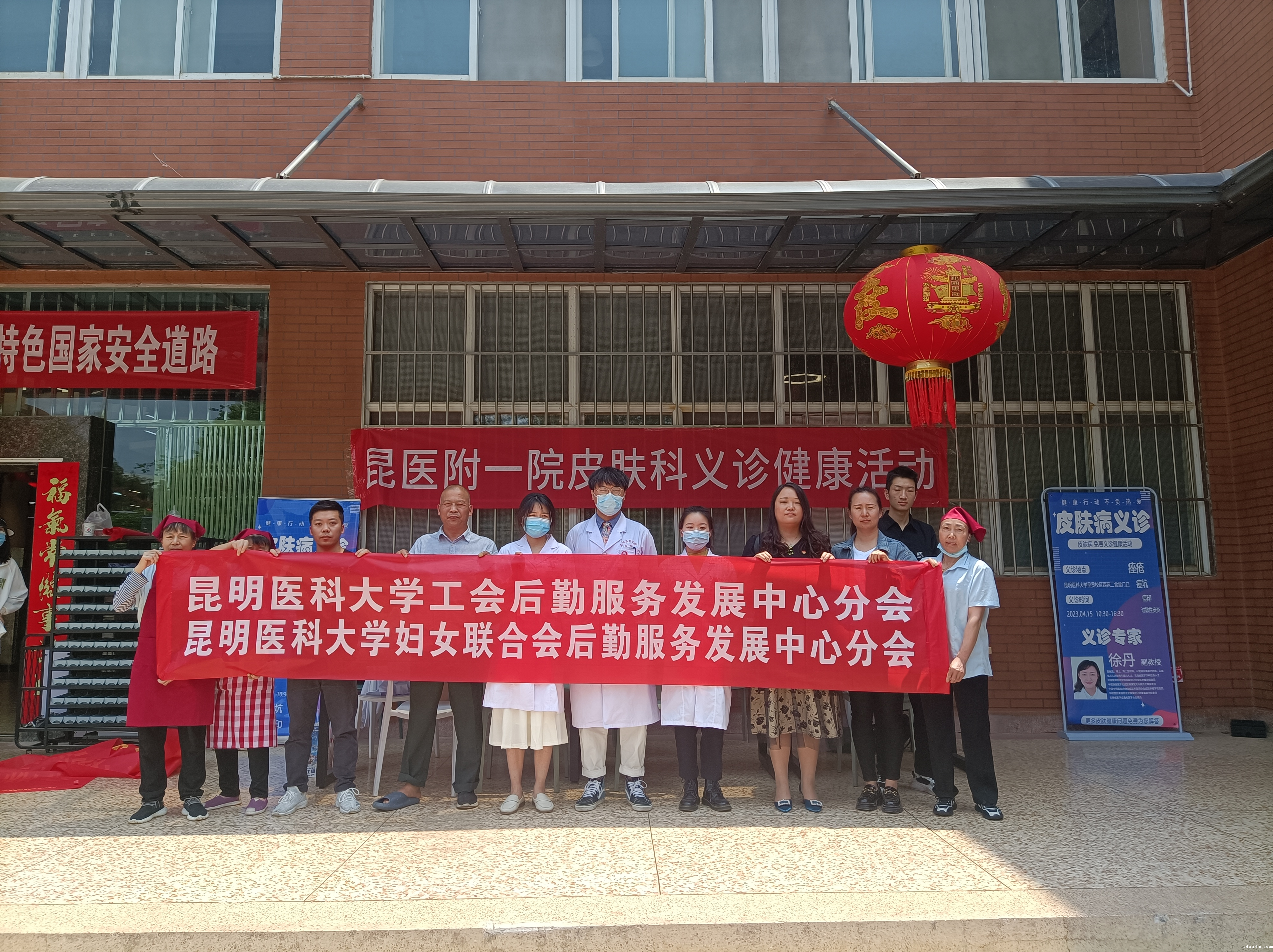 春夏相交,是皮肤问题的高发季节,为加强学校师生对皮肤健康的重视与认知,更好地了解皮肤问题,落实为民办实事,后勤服务发展中心第一党支部联合后勤中心分会、妇联分会邀请18luck备用登录第一附属医院皮肤科徐丹副教授等专家,于2023年4月15日,到呈贡校区西苑二食堂门口进行为期一天的义诊活动。