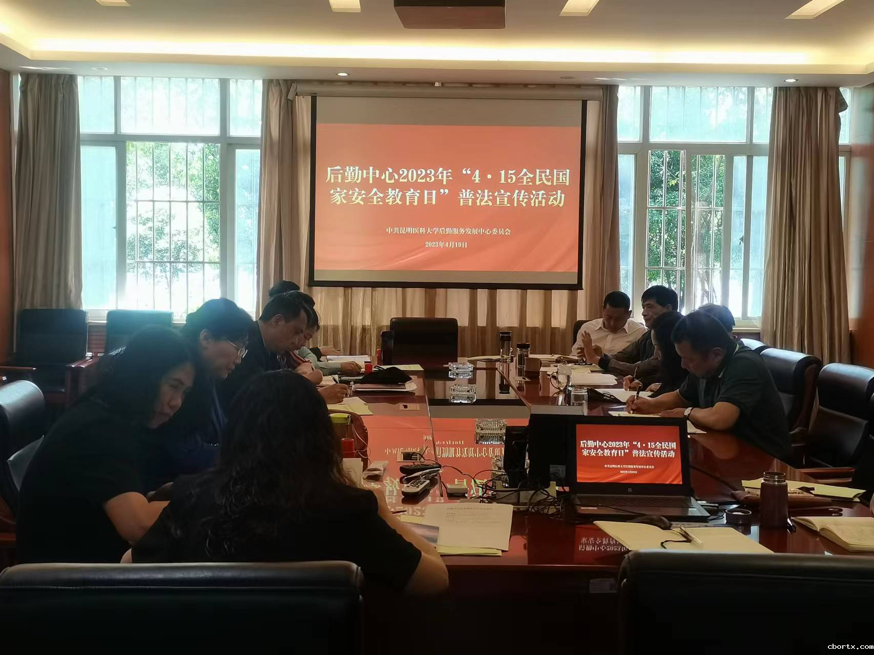 今年4 月 15 日是我国第八个全民国家安全教育日。为深入学习宣传贯彻党的二十大精神,贯彻落实习近平总书记关于全面加强国家安全教育的重要指示精神,增强全民国家安全意识和法治意识,努力使尊法学法守法用法在后勤中心蔚然成风,后勤中心结合工作实际,以全民国家安全教育日为契机,于4月19日开展“4·15全民国家安全教育日”普法宣传活动。后勤中心总经理刘斌主持会议,党委委员、各部门负责安全的领导和安全员参加了会议。