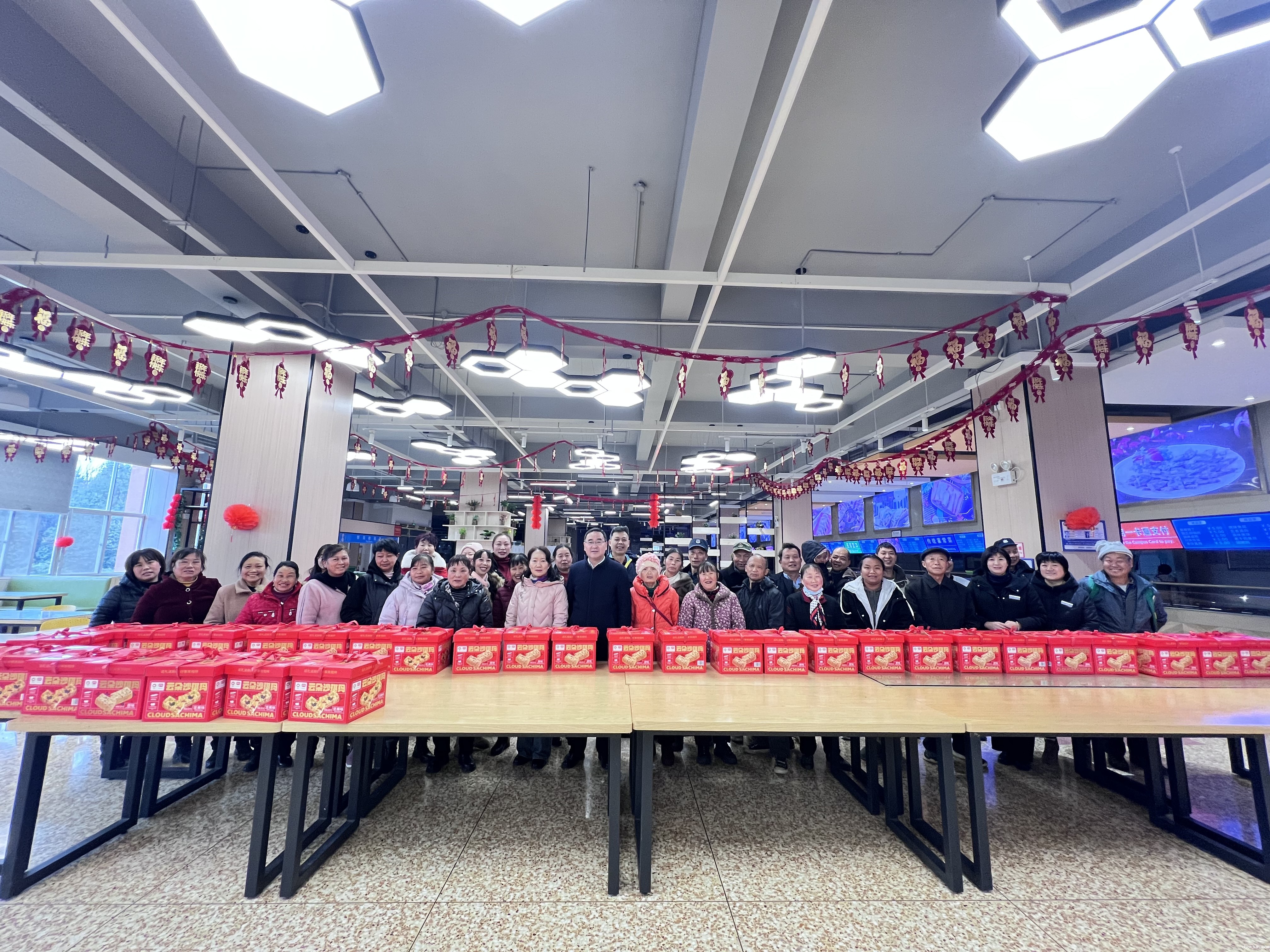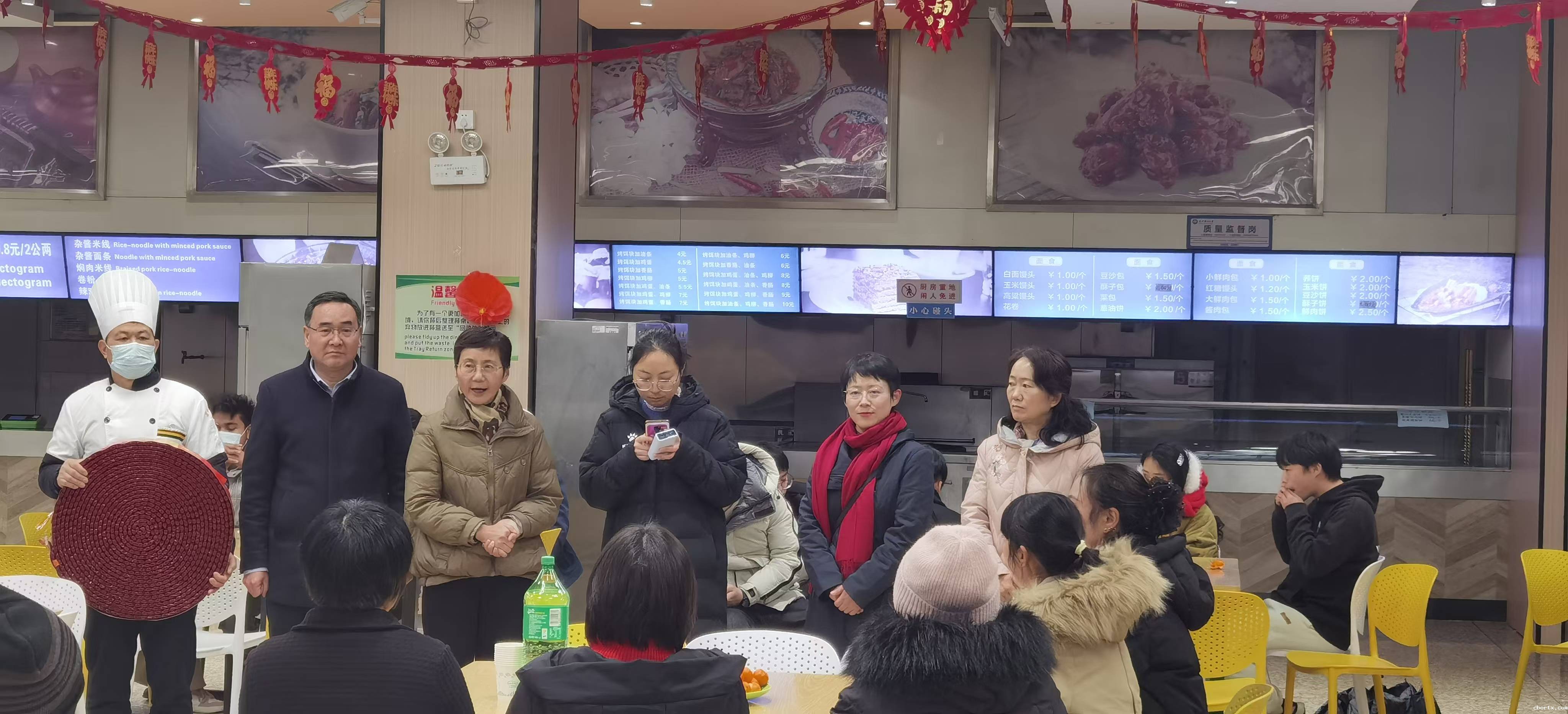 17:30,学校党委副书记徐绍琼、校长办公室主任及公司领导班子成员与在校值班人员及留校学生共进年夜饭,庆祝春节。徐副书记指出,后勤全体工作人员始终坚守岗位、默默奉献,在办公环境维护、食堂管理等方面做了大量细致入微的工作,为全校师生提供了优质、高效、贴心的服务。她希望在新的一年里,大家能够继续努力,再创佳绩。