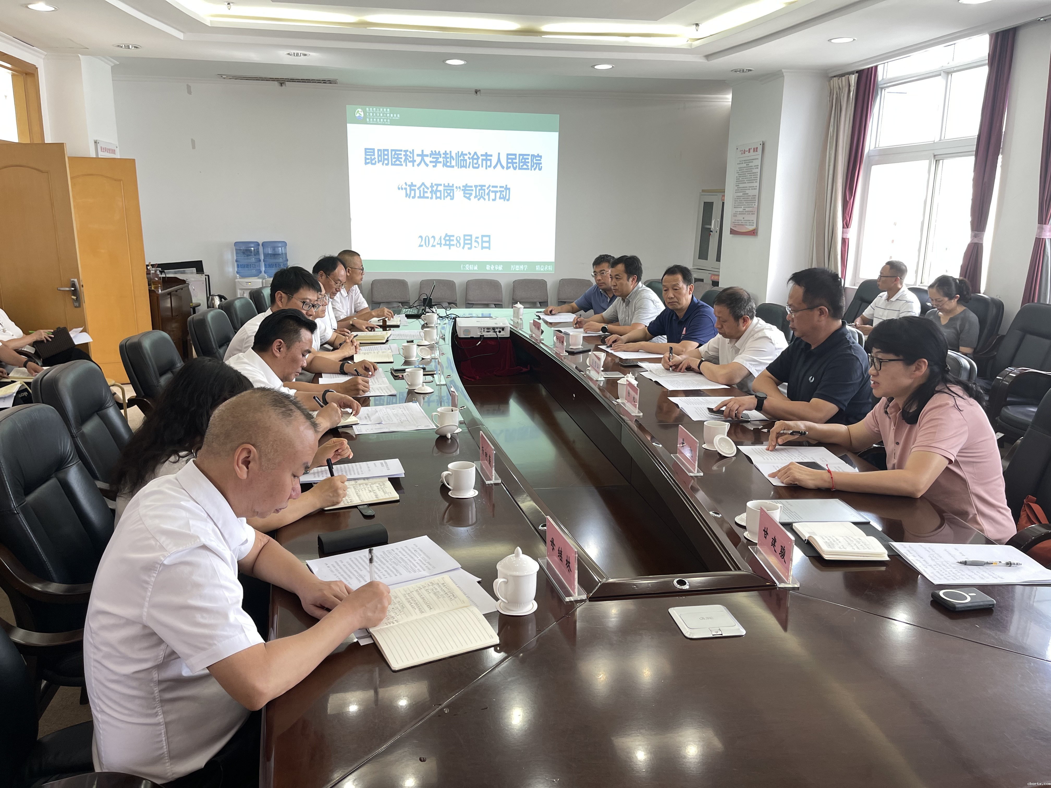 杨丙申介绍了临沧市卫生健康工作的基本情况,唐贞力汇报了临沧市人民医院医疗卫生人才工作开展情况。双方围绕毕业生招聘、教学管理、学历提升、师资培训、精准医学研究分院建设等工作进行了座谈交流。