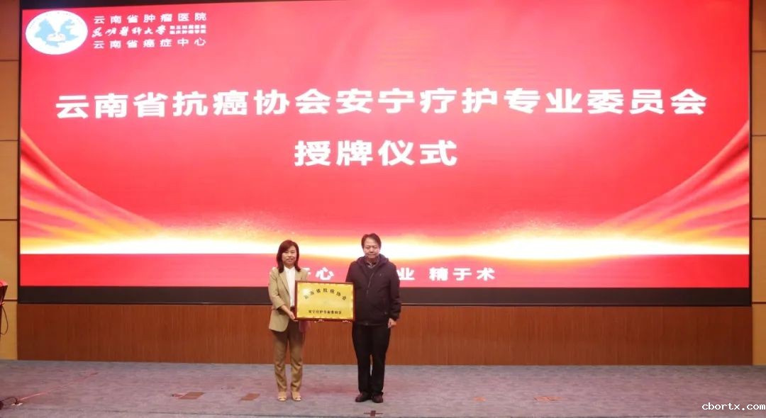 随后,云南省抗癌协会安宁疗护专业委员会成立大会正式召开。经过前期选举,医院成为云南省抗癌协会安宁疗护专业委员会主任委员单位。会上,谭晶理事长在致辞时指出,云南省抗癌协会安宁疗护专委会作为云南省抗癌协会新成立的分支机构,今后要对标中国抗癌协会的评价机制,充分发挥主观能动性,促进各项工作的协调推进和整体发展。谭晶理事长宣读了《云南省抗癌协会关于成立第一届安宁疗护专业委员会通知》和云南省抗癌协会安宁疗护专委会名单,同时为“云南省安宁疗护专业委员会”授牌。