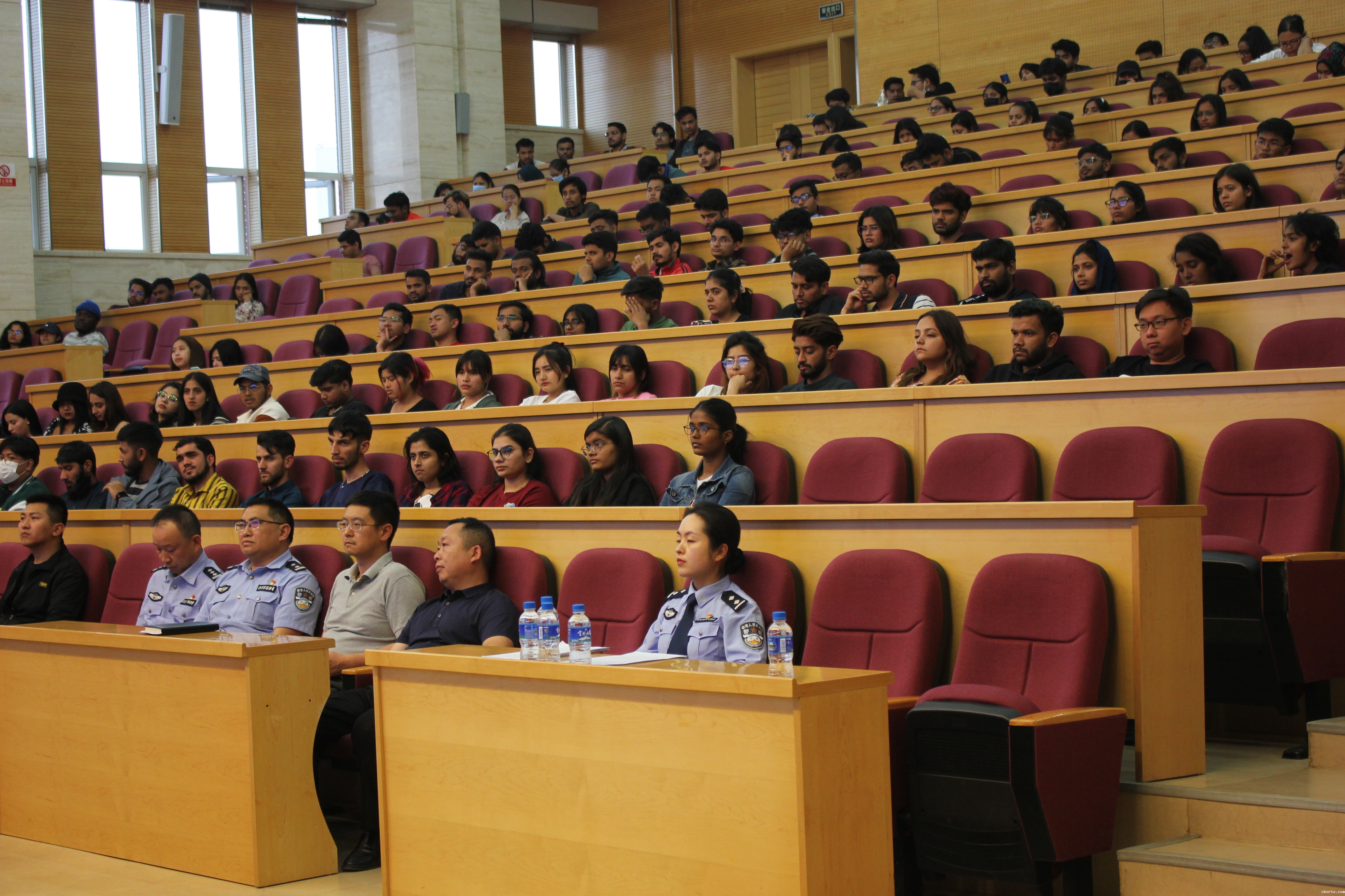 参会警官围绕出入境管理相关法律法规、防范电信网络诈骗、防范校园盗窃和毒品相关法律法规、涉外法律法规、反恐及宗教政策等专题进行宣讲,全面介绍了涉外法律法规及校园安全知识,指导留学生如何应对身边可能出现的安全问题,如何应对日益频繁的电信诈骗行为,提醒留学生严格遵守我国有关毒品、反恐及宗教等领域政策法规,避免出现非法入境、非法居留和非法就业等情况,并表示希望留学生强化在华学习期间的合法居留意识,祝福大家在昆学习期间平安顺利。