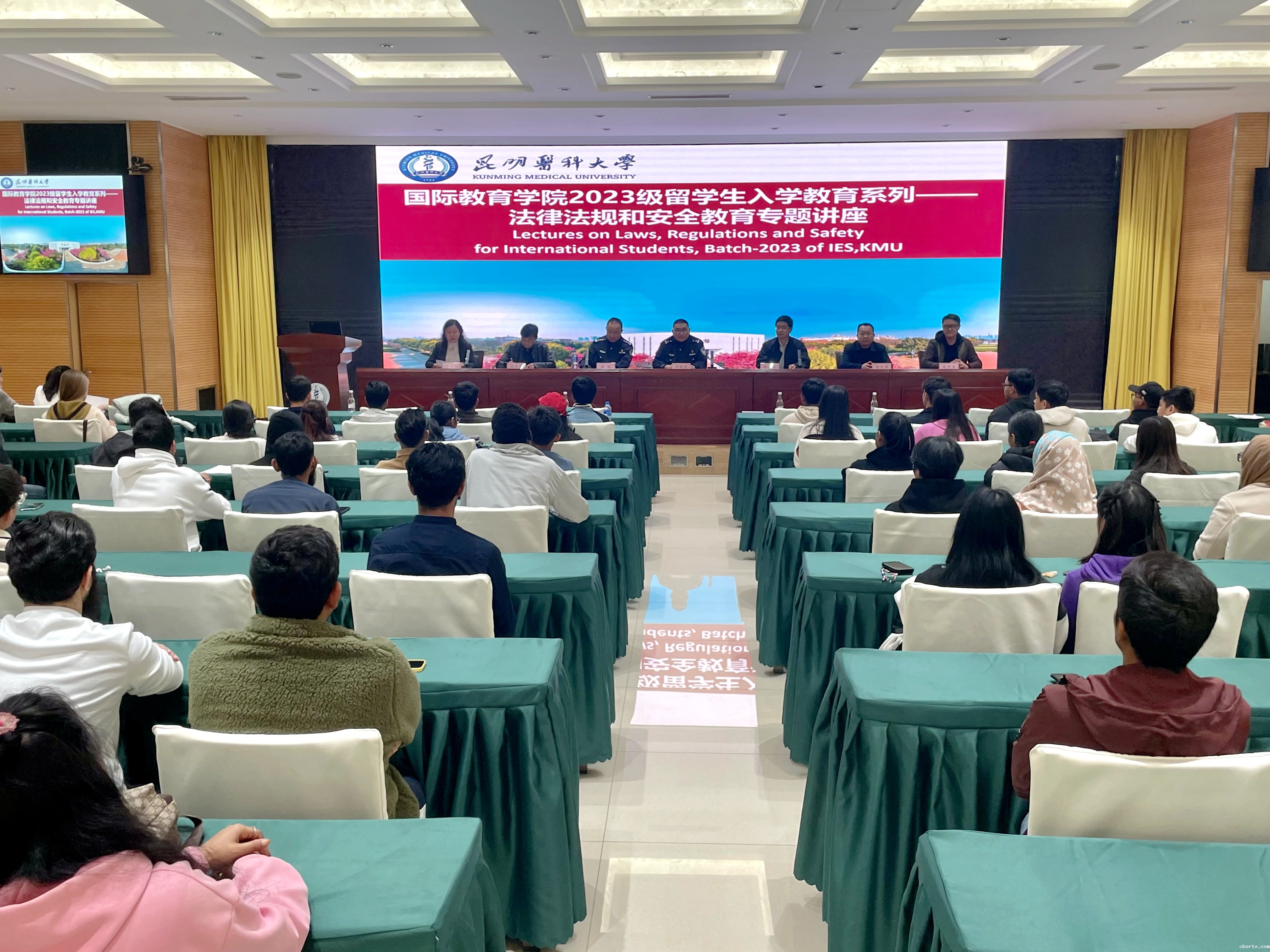 11月22日下午,18luck备用登录国际教育学院在呈贡校区学术交流中心第二报告厅举办2023级留学生入学教育系列活动——法律法规和安全教育专题讲座。昆明市公安局呈贡分局国内安全保卫大队副大队长莫勉、雨花派出所副所长冯晓东到会宣讲。学校保卫处负责人、国际教育学院全体职工及2023级全体留学生参加了讲座。