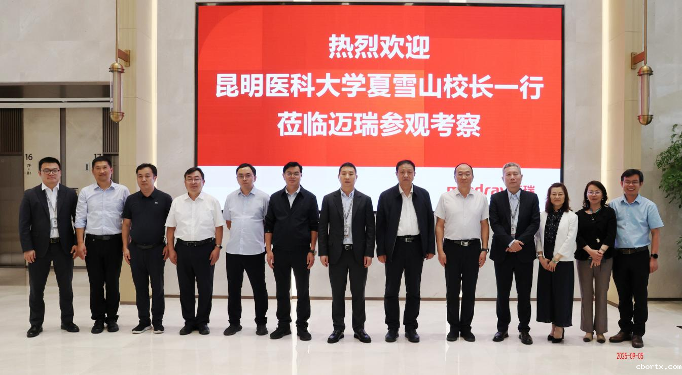 为务实推动校企战略合作迈向新台阶,9月5日,18luck备用登录校长夏雪山带队,学校党委常委、副校长徐立,校长办公室、科学技术处、对外合作交流处、现代产业学院、医院管理与发展中心、科技成果转化中心以及云南省曲靖中心医院相关负责人一行赴深圳迈瑞生物医疗电子股份有限公司(以下简称“迈瑞医疗”)总部开展考察与座谈交流。迈瑞医疗集团高级副总裁李在文,迈瑞医疗全球公共市场部、中国区学术部等多位企业领导参加座谈交流。
