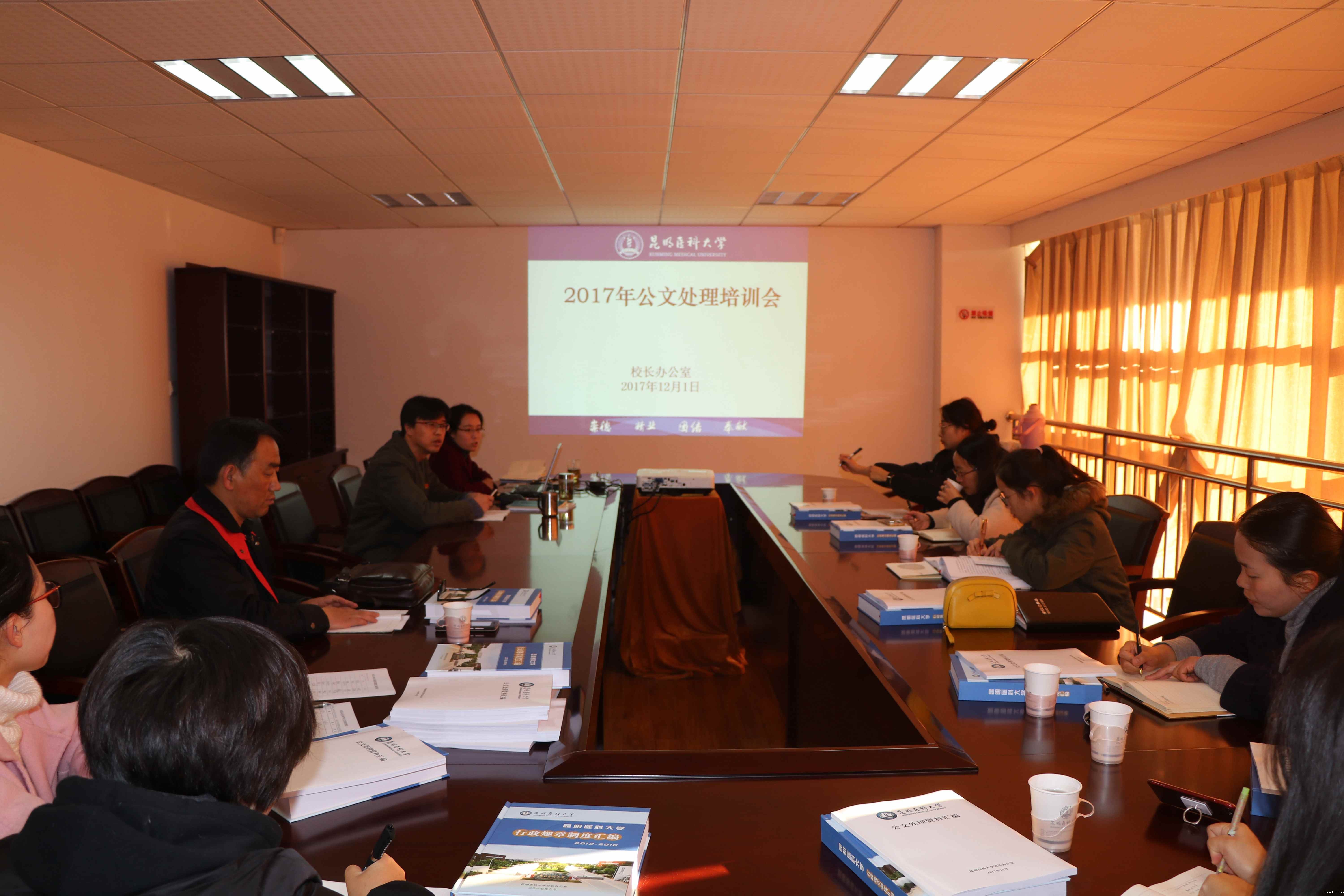 为提高学校行政公文处理工作的科学化、制度化和规范化水平,根据学校工作安排,2017年12月1日上午,校长办公室在校务管理中心第五会议室召开2017年公文处理培训会,机关各行政部门和部分学院公文处理人员参加了此次培训。