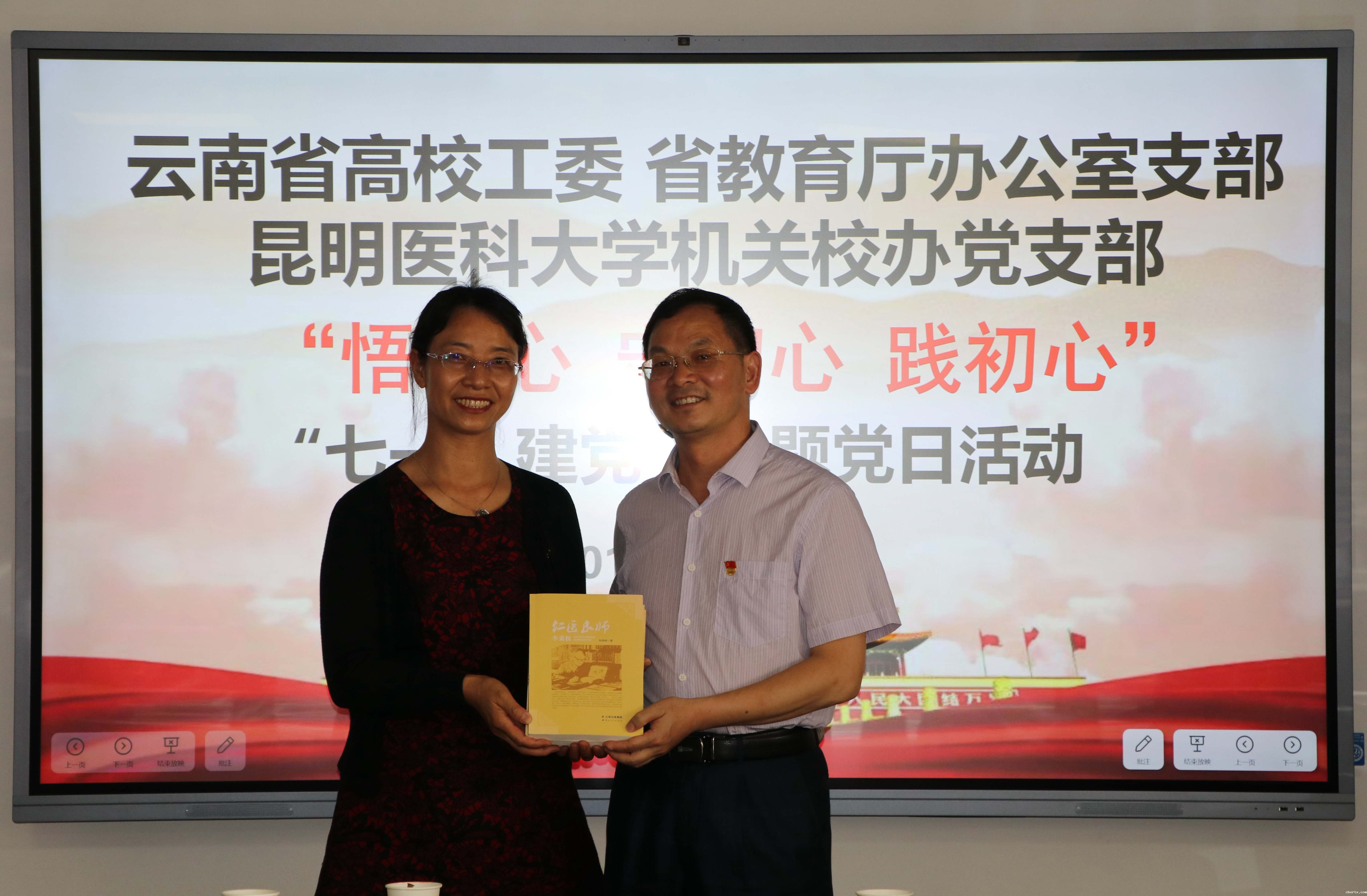 校办党支部向省委高校工委、省教育厅办公室党总支赠送《仁医良师李秉权》一书。