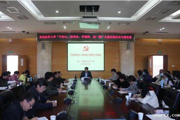 李松结合前期学习和调研情况,以《不忘教育初心,加快高水平医科大学建设》为题,从“全面把握高等教育和卫生健康面临的新形势和新任务;科学定位,编制好“十四五”规划;高水平医科大学建设的思考”三个方面进行讲授。