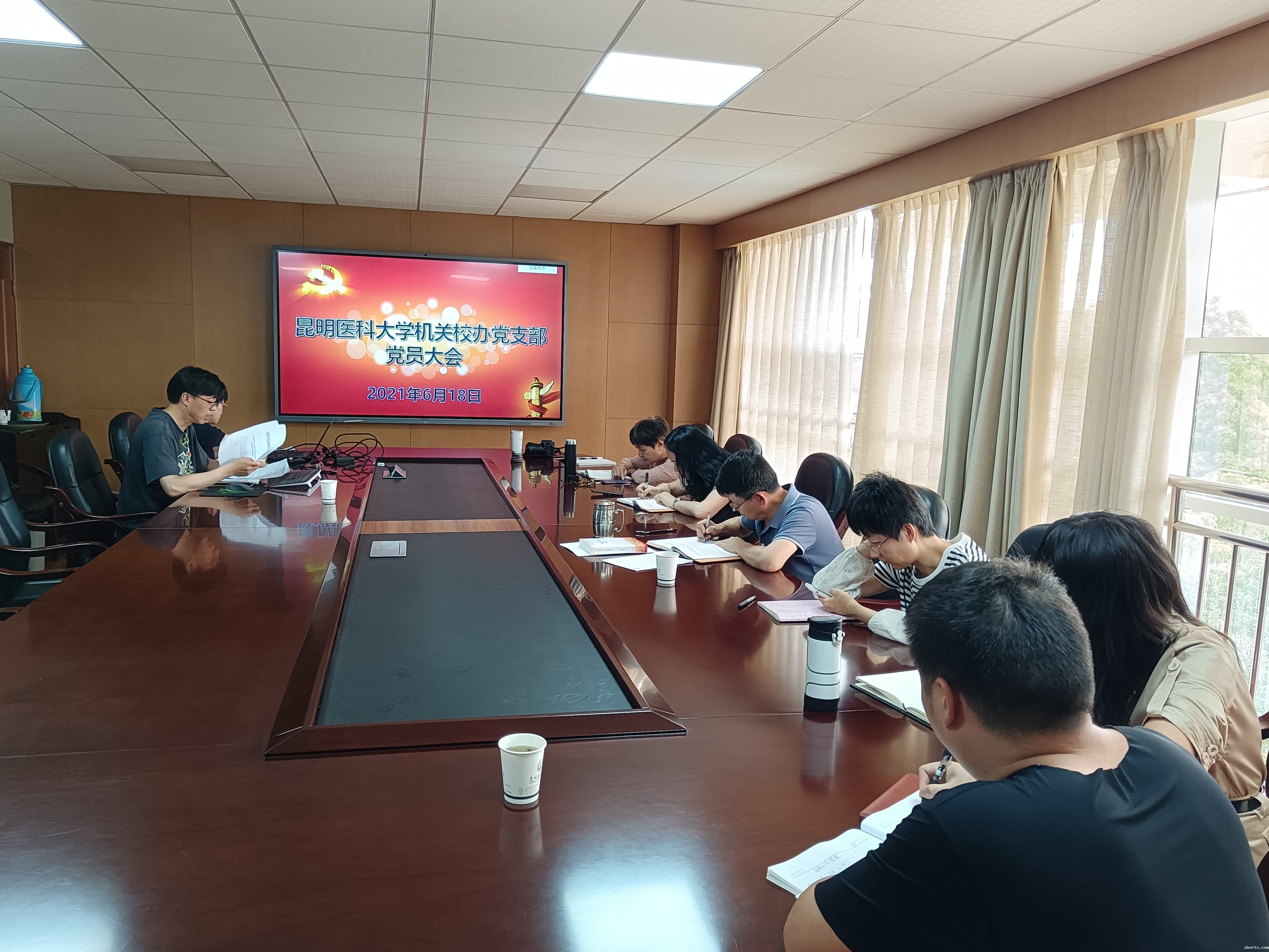 6月18日下午,校办支部在校务管理中心第五会议室召开支部党员大会,平政校区管委会、经管办学点党员通过网络视频方式参会。李松校长作为支部普通党员参加。