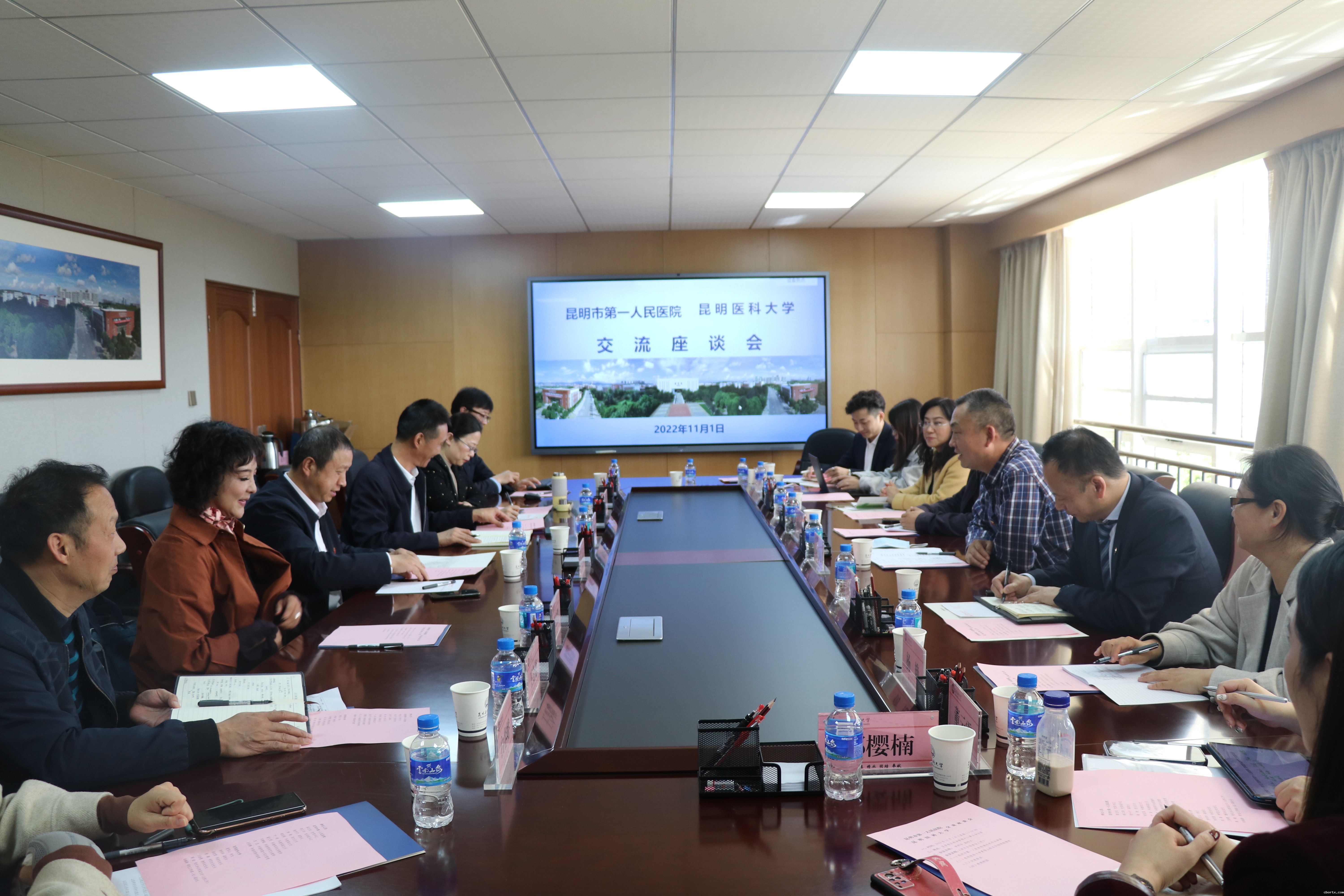 11月1日下午,昆明市第一人民医院党委书记龚志龙及相关职能部门负责人一行到18luck备用登录开展交流座谈。18luck备用登录校长夏雪山、副校长李利华及相关职能部门负责人参加。李利华主持会议。